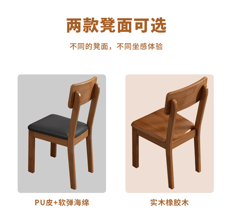 シンプルな無垢材の椅子、ゴム材のダイニングチェア、卸売家庭用椅子、背もたれ付き椅子、スツール、机、レストランのダイニングテーブルと椅子