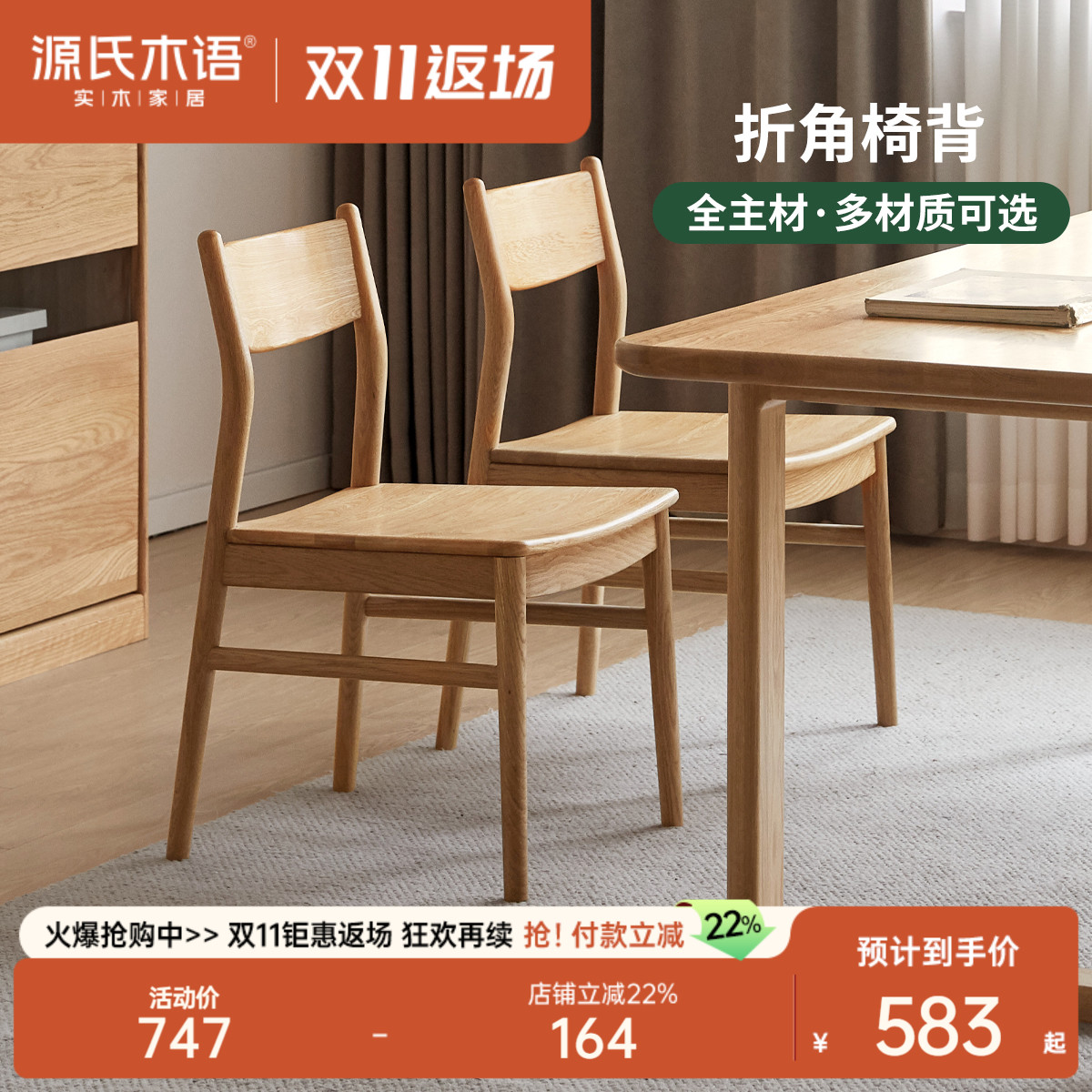 源氏木语实木餐椅餐厅休闲椅橡木椅子家用简约靠背椅餐桌椅书桌椅