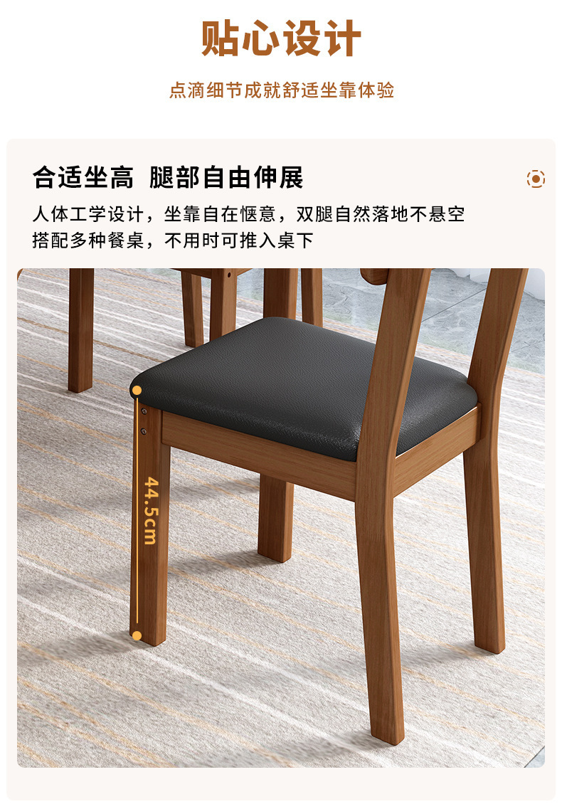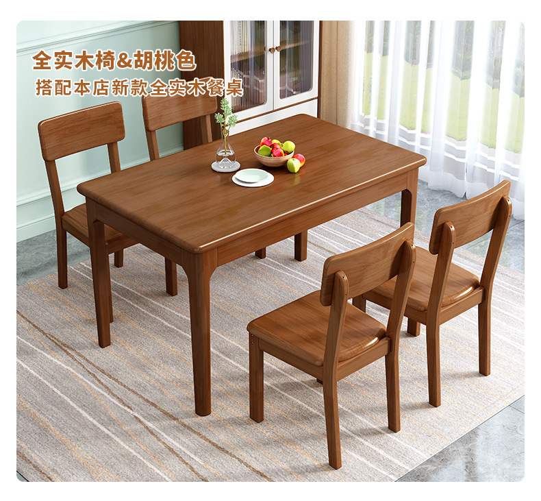 实木餐椅家用小户型不占地方椅子餐厅吃饭凳胡桃色简约现代餐桌椅