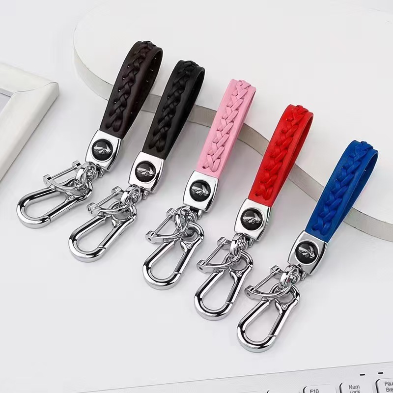汎用キーホルダー編み紐ダブルボタン大衆bmwベンツアウディ金属キーホルダー皮質車標男