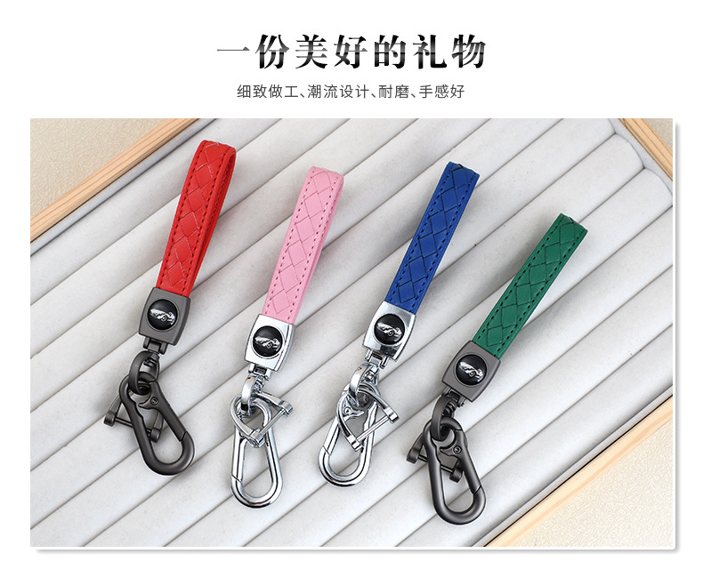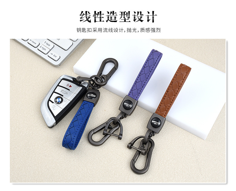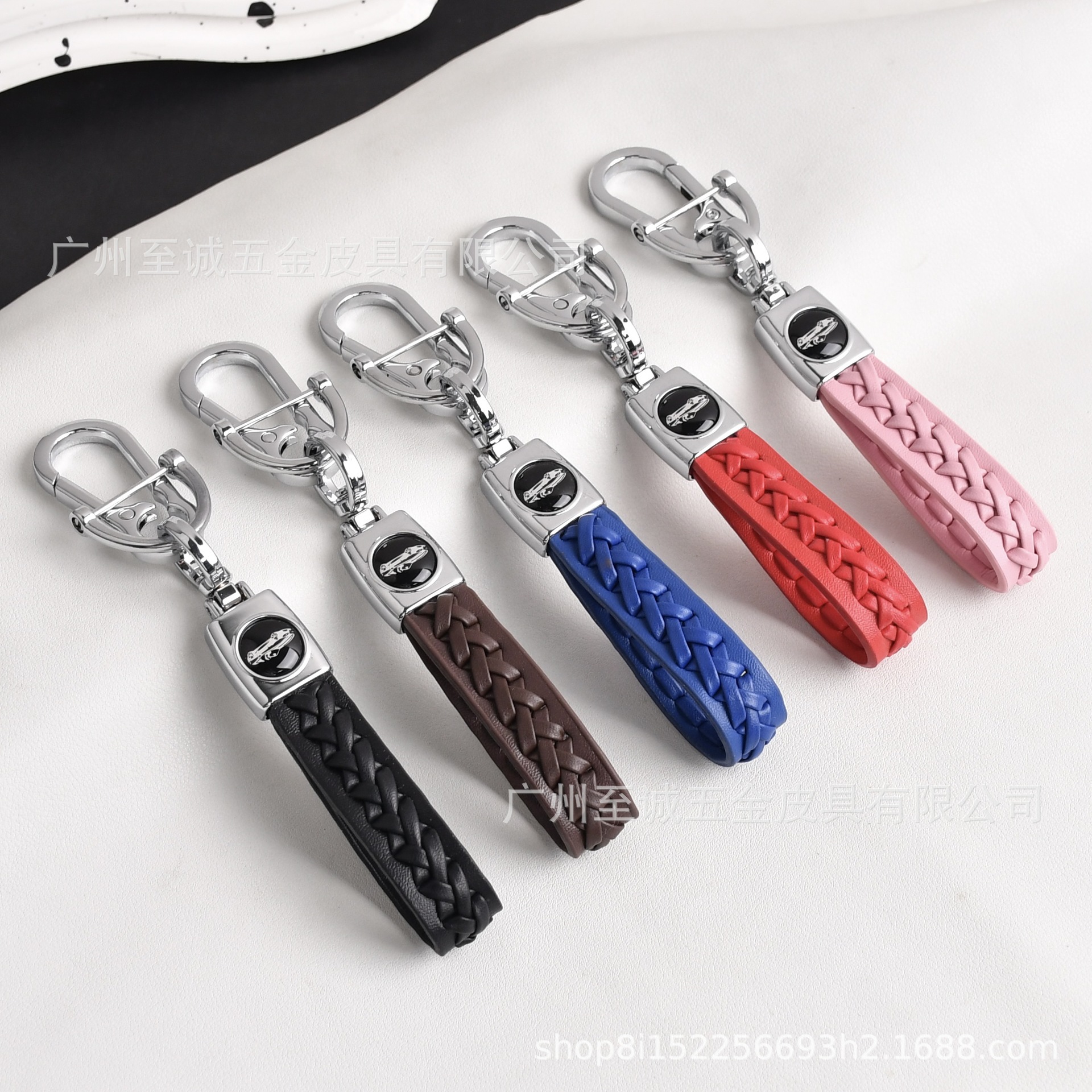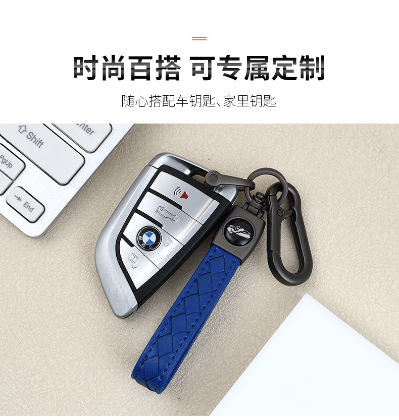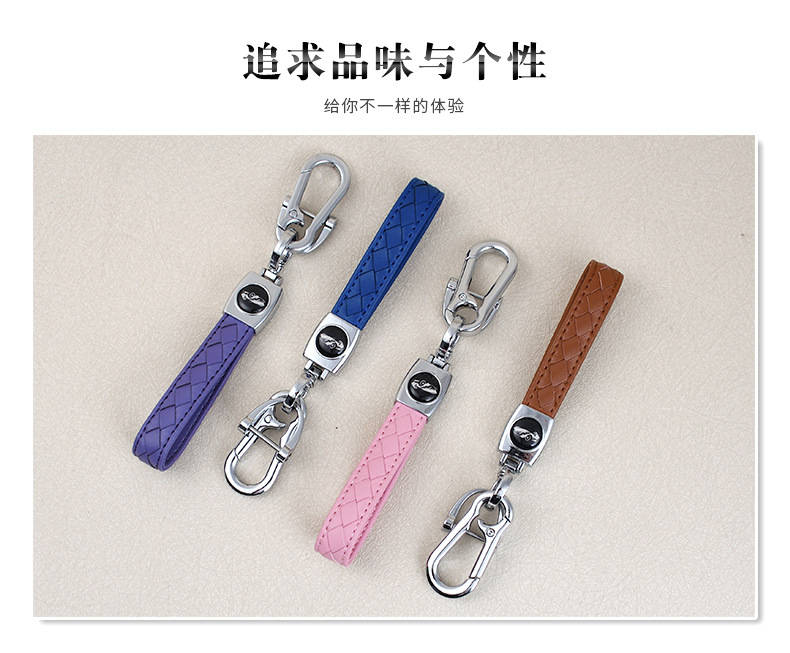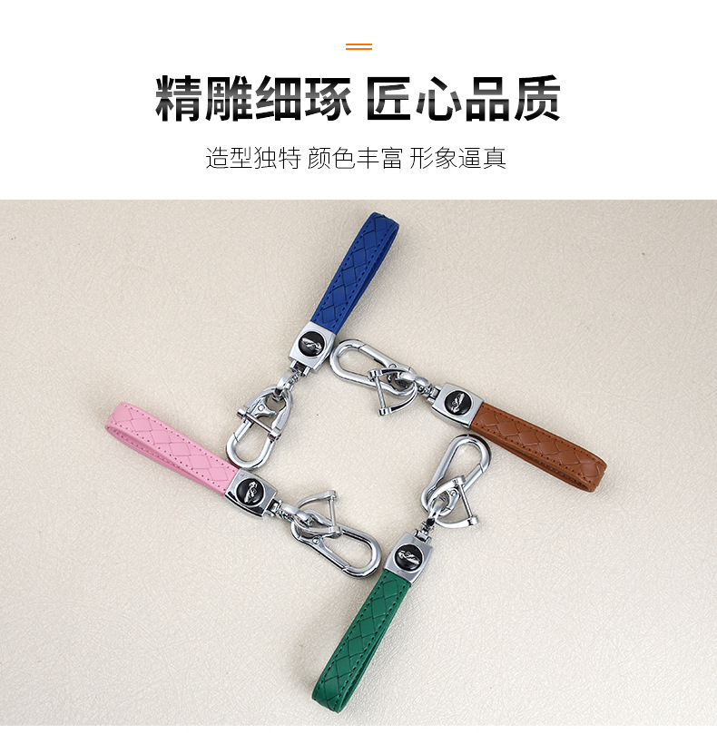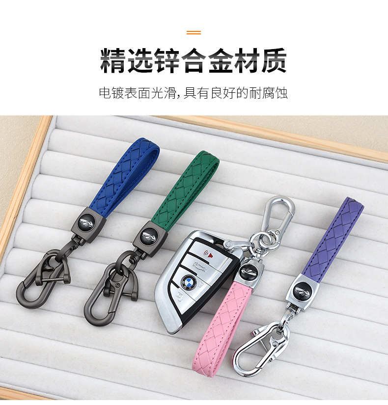 跨境新款小羊皮编织汽车钥匙扣配饰创意滴胶车标logo钥匙链挂件厂