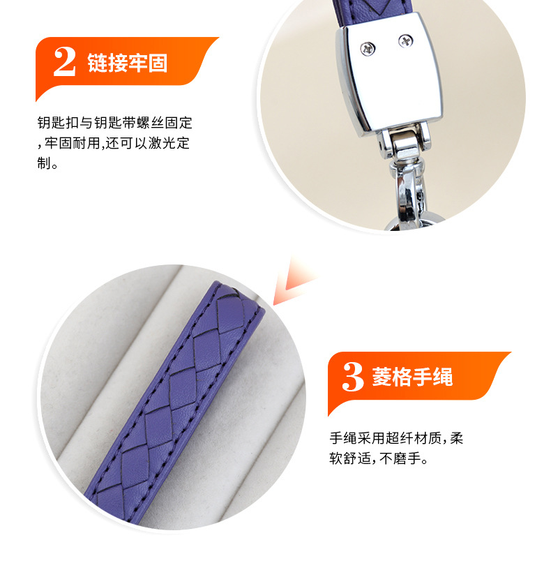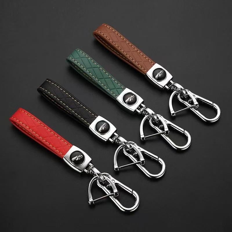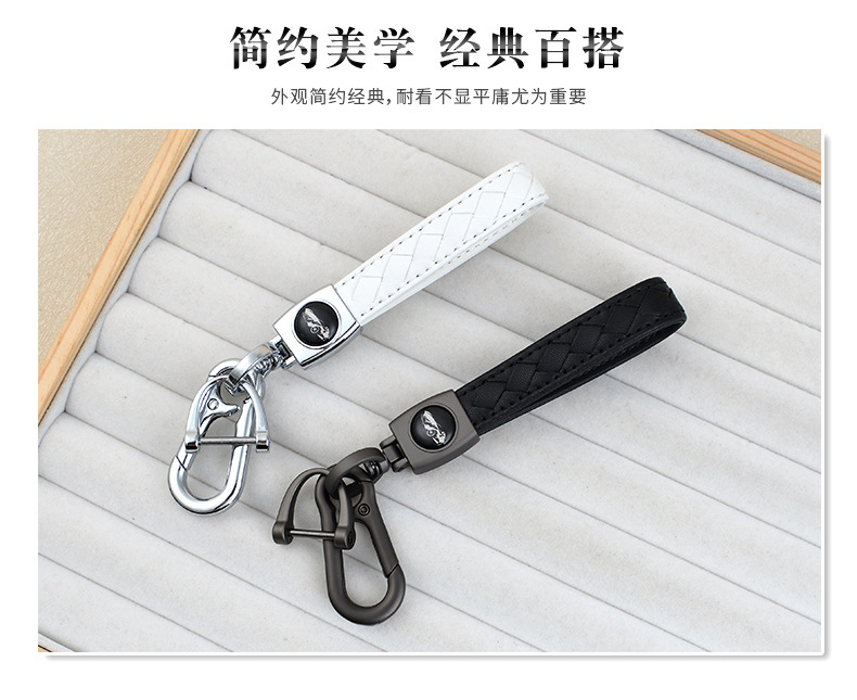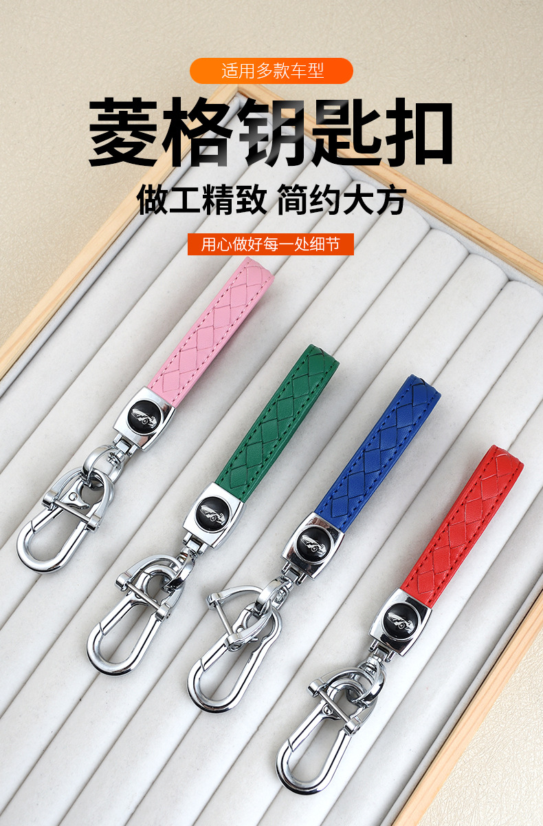 新款汽车钥匙扣高档精美钥匙绳菱形压纹钥匙链车标金属扣挂件批发