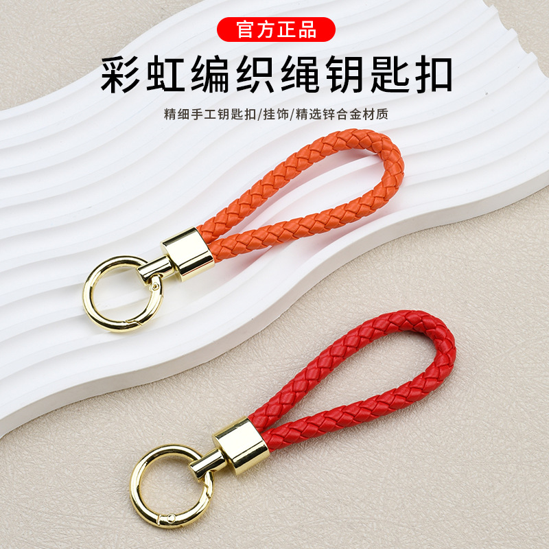 クロスボーダー小羊皮編み自動車キーホルダー手作り編みひも男女キーホルダー自動車金属バックルストラップ