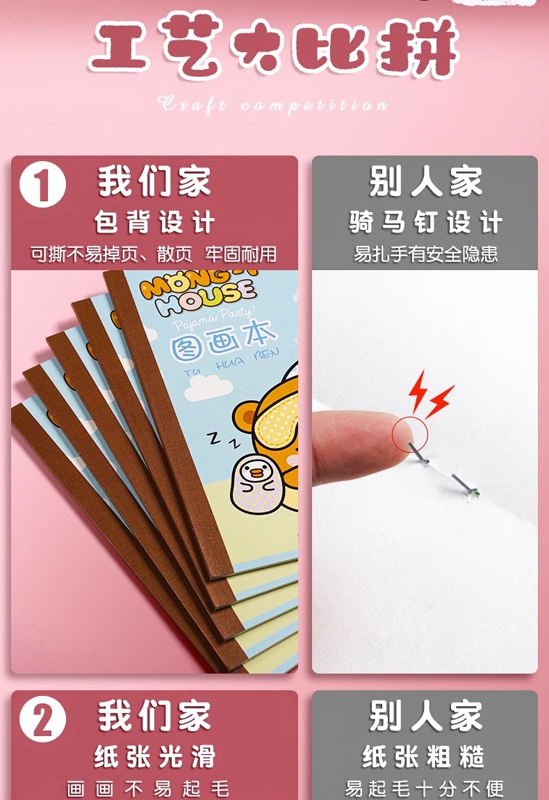 可爱拉布布A4加厚图画本幼儿园空白纸可撕线画画本小学生素描美术