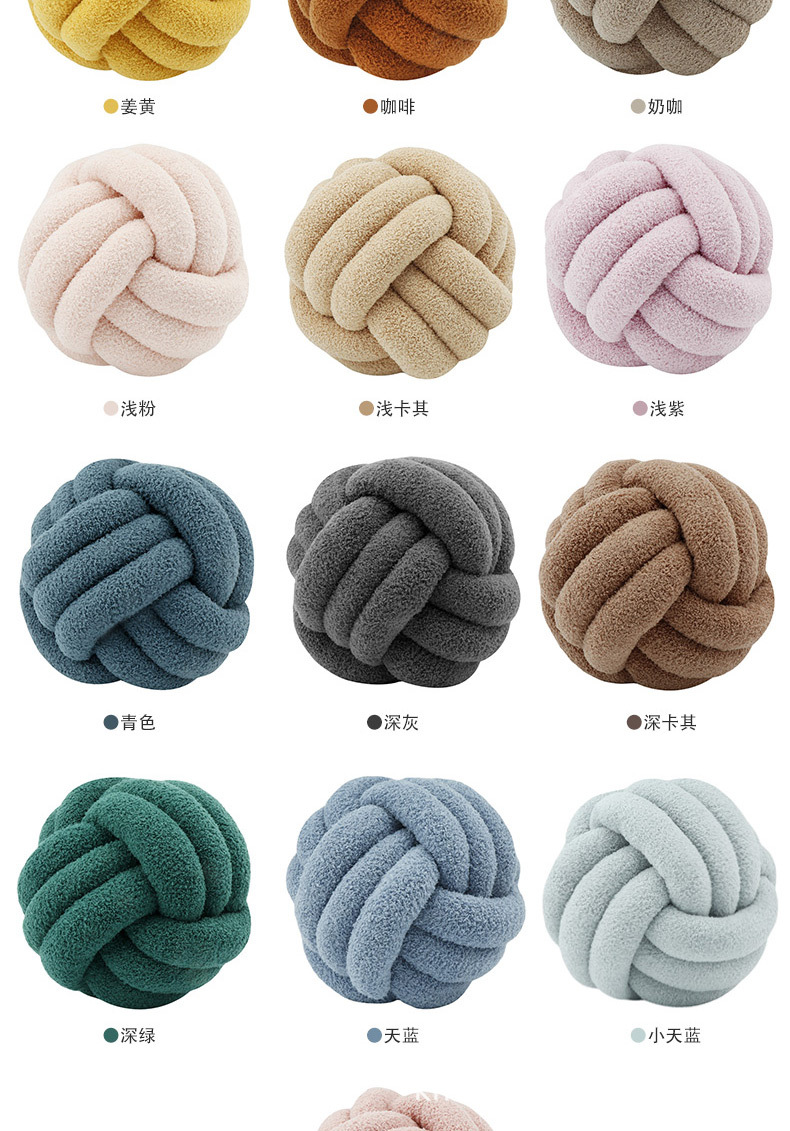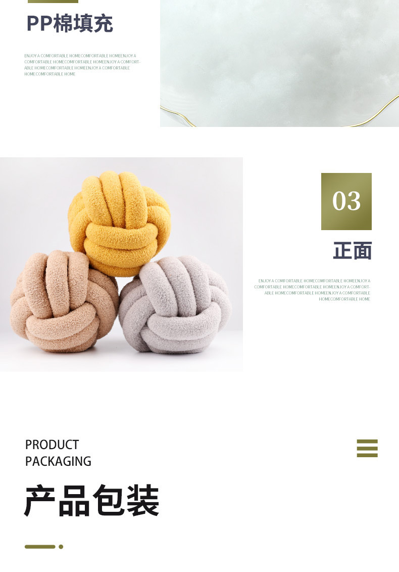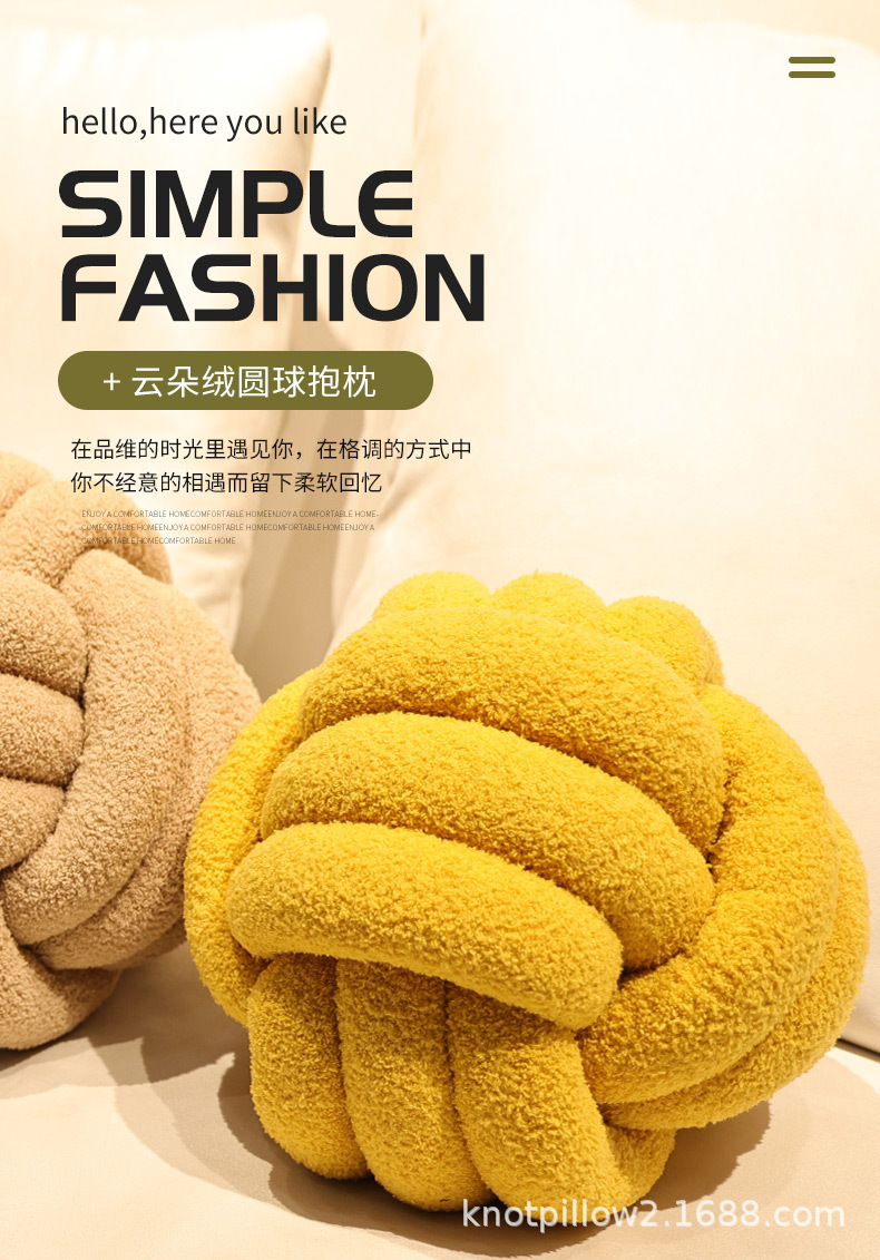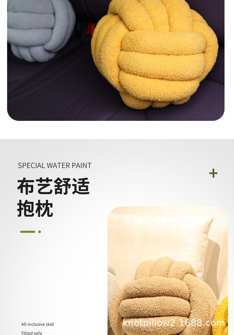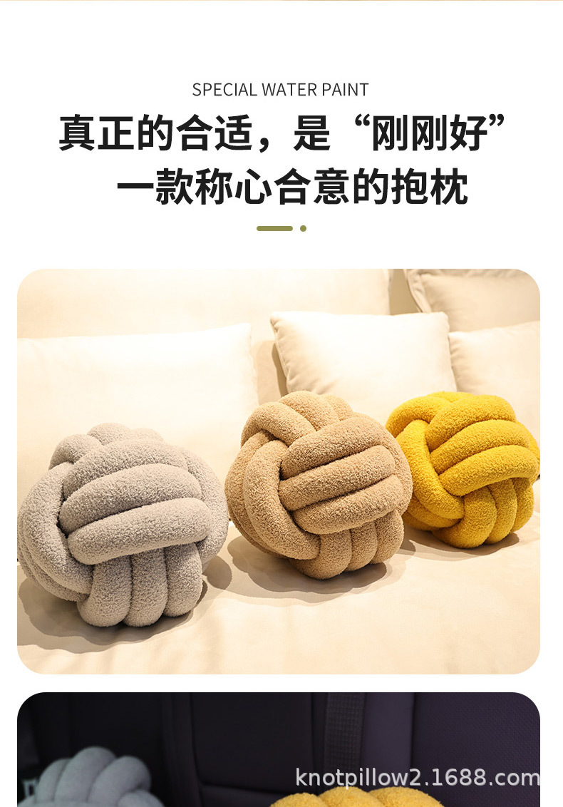跨境手工编织羊羔绒打结球靠枕客厅沙发创意球形抱枕家用床头靠背