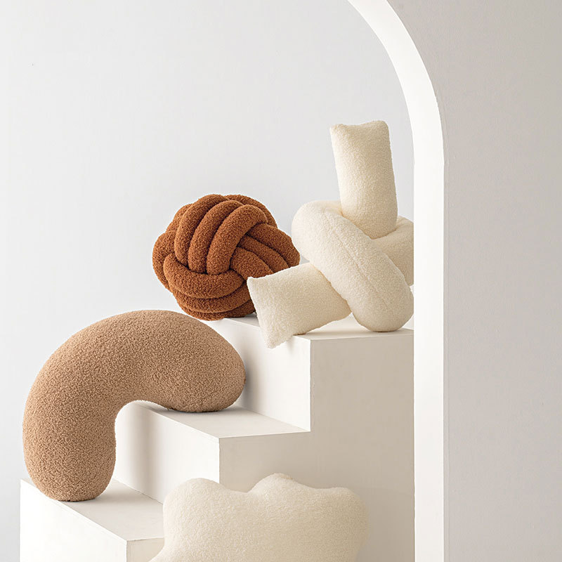 インクリームスタイルテディラムぬいぐるみ三本ロープ結び目ラウンドボールホームソファベッドルーム枕