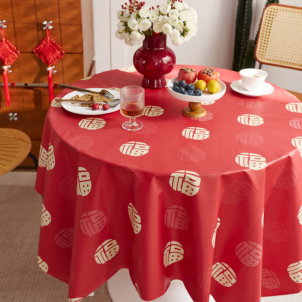 新年テーブルクロスPVC防水防油赤お祝い福字祝日雰囲気感年越し装飾布茶テーブルクロス