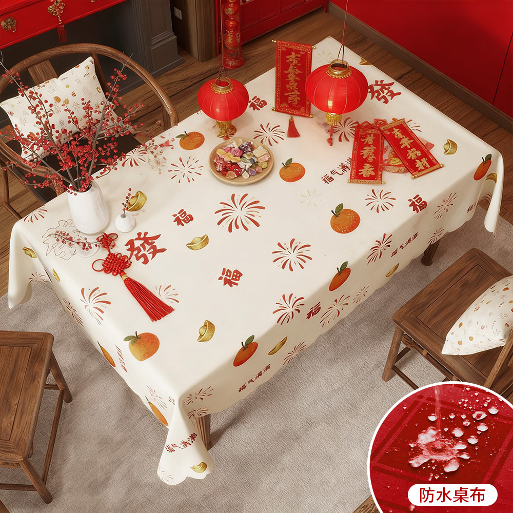 新年桌布防水轻奢氛围感烟花福字印花节日装饰台布茶几桌垫餐桌布