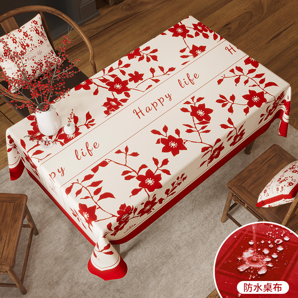 新年桌布防水新中式海棠花红色喜庆节日氛围感桌垫茶几装饰餐桌布