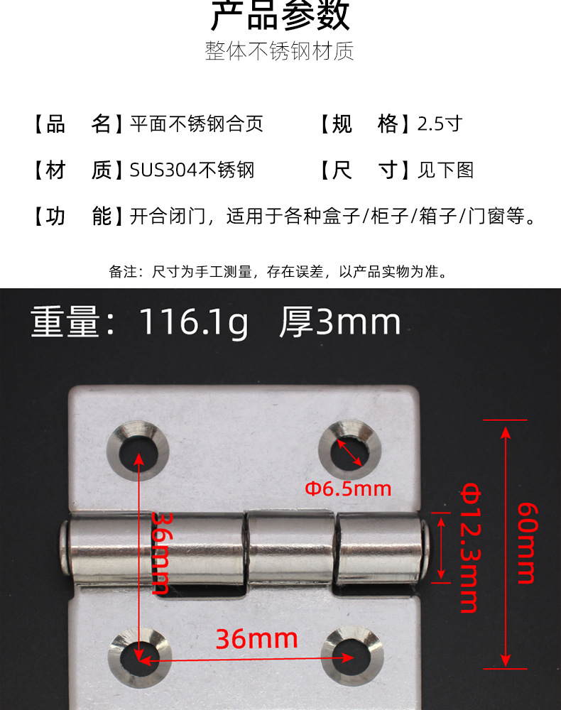 歩遠304ステンレス平開ヒンジ厚さ耐力工業大型配電箱ドアヒンジ16*86