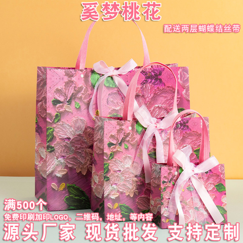 油画风桃花礼品袋生日手提袋化妆品饰品包装袋服装店购物袋纸袋子
