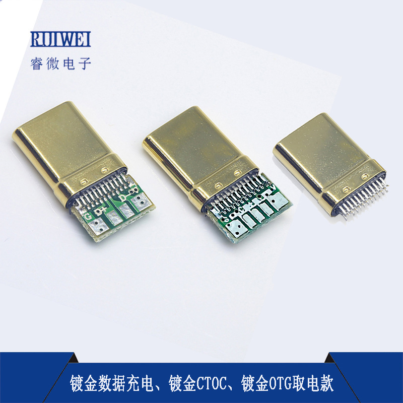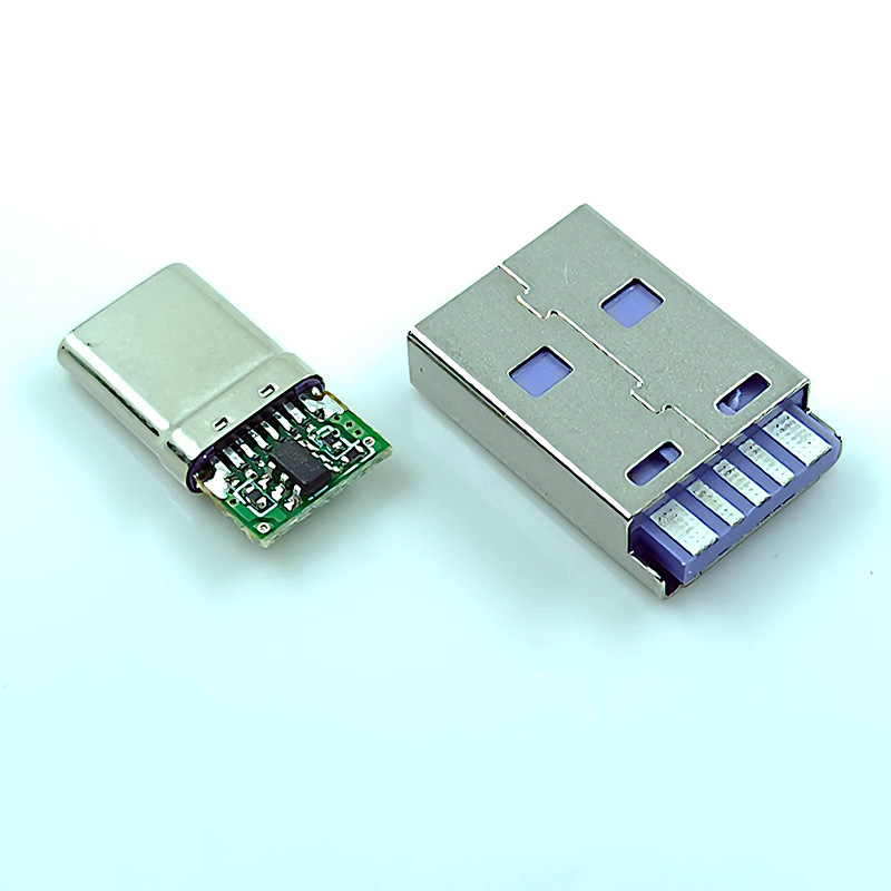 Type-c pdオス13c5溶接棚卸ダブルコンデンサ超速充プラグ大電流引張シェル黒接着剤