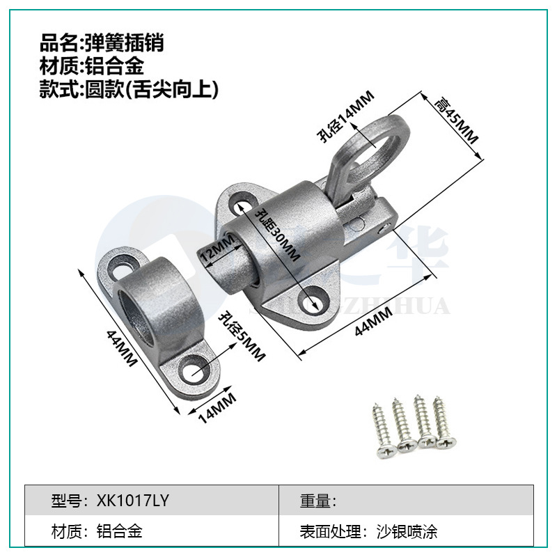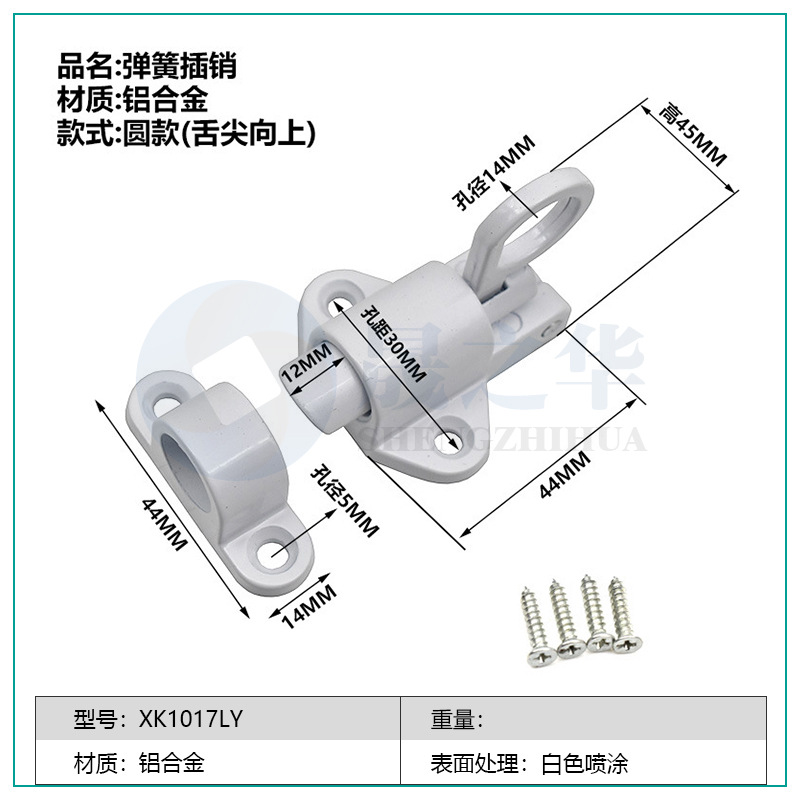 铝合金飞机插销锁推拉门窗平开窗自关锁扣宠物笼门栓自动弹簧插销
