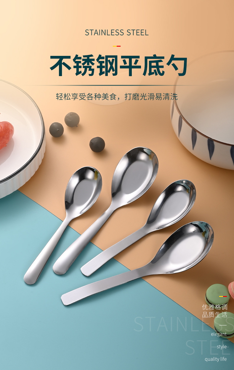 スプーン家庭用スプーンステンレス平底スプーン商用スプーン成人食事スプーンスープホテル朝食に粥スプーンを食べる