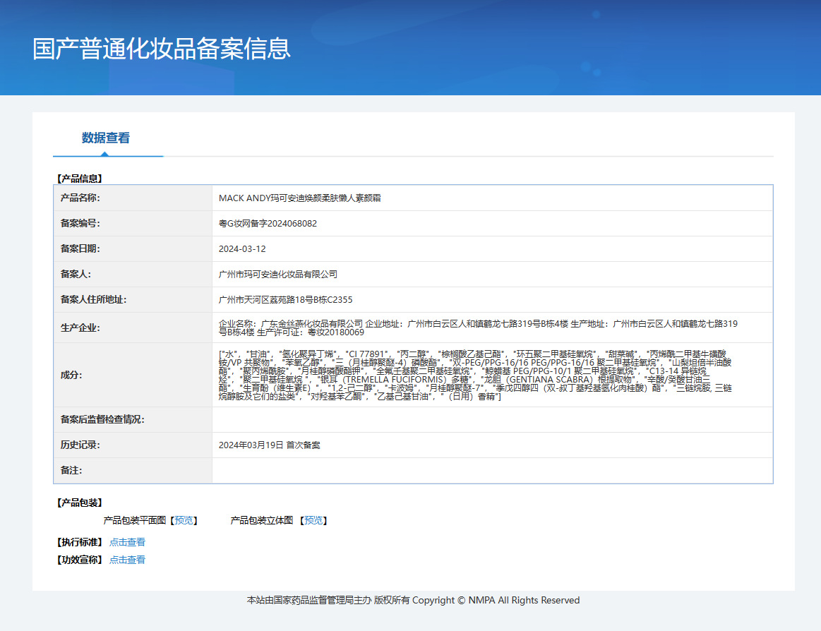 非特定化粧品届出証番号 広東Gメイクアップネットワーク準備番号 2024068082
