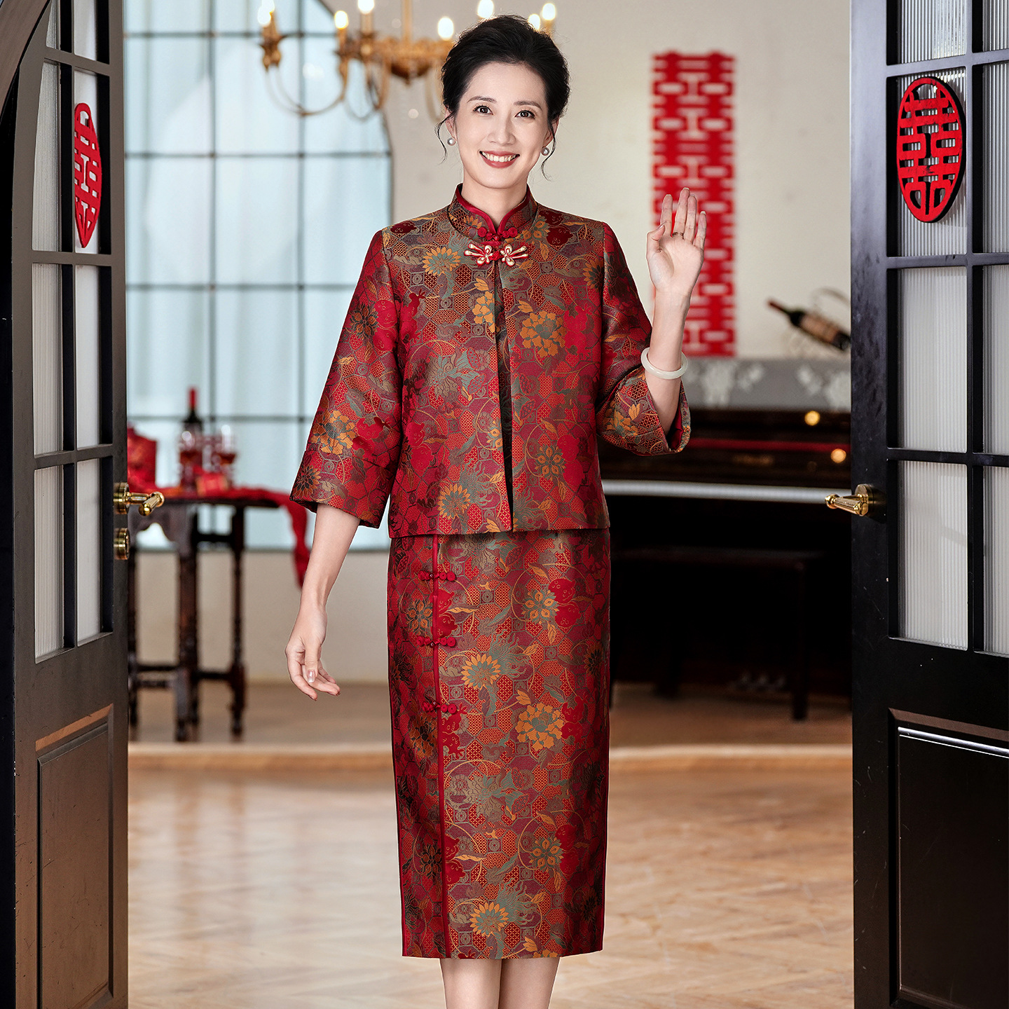 工場卸売結婚式ママドレス2025夏酢酸ジャカードサテン喜姑披露宴チャイナドレス洋気6109