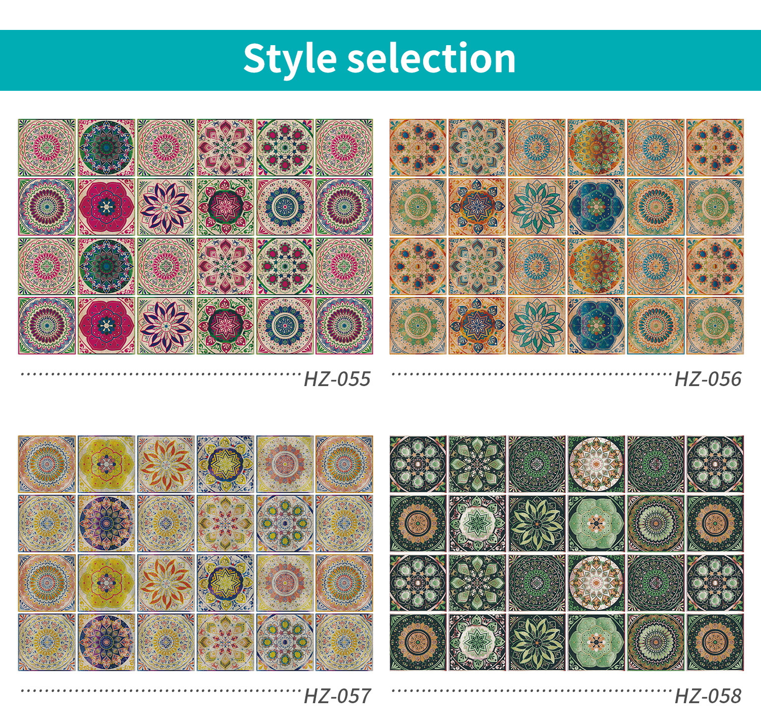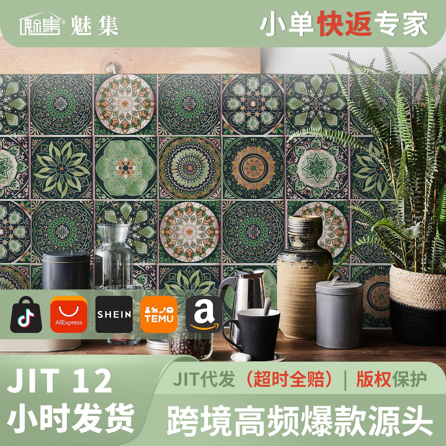 魅集10枚曼荼羅模様タイルシールpvc自己接着防水装飾壁貼りアマゾンクロスボーダー卸売り