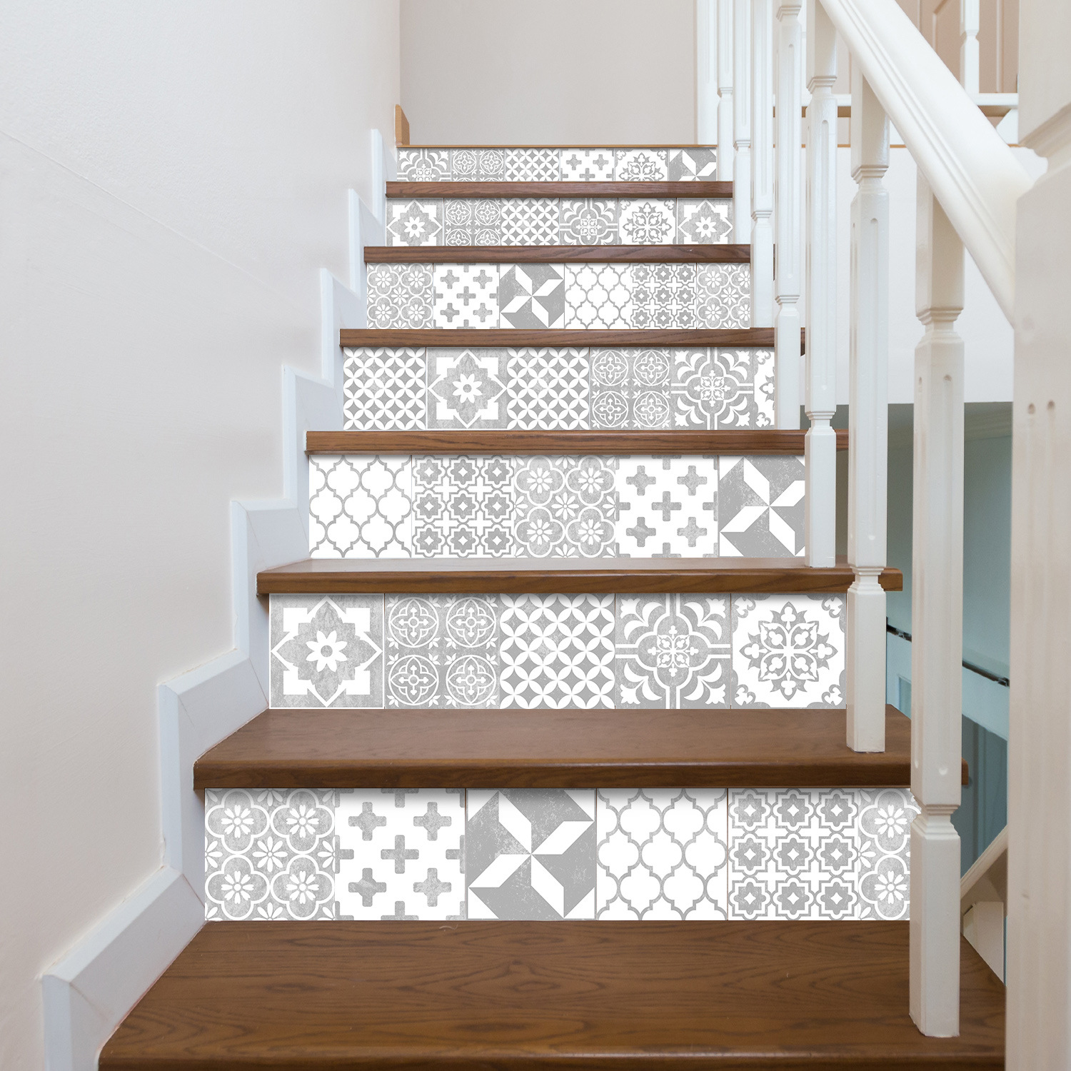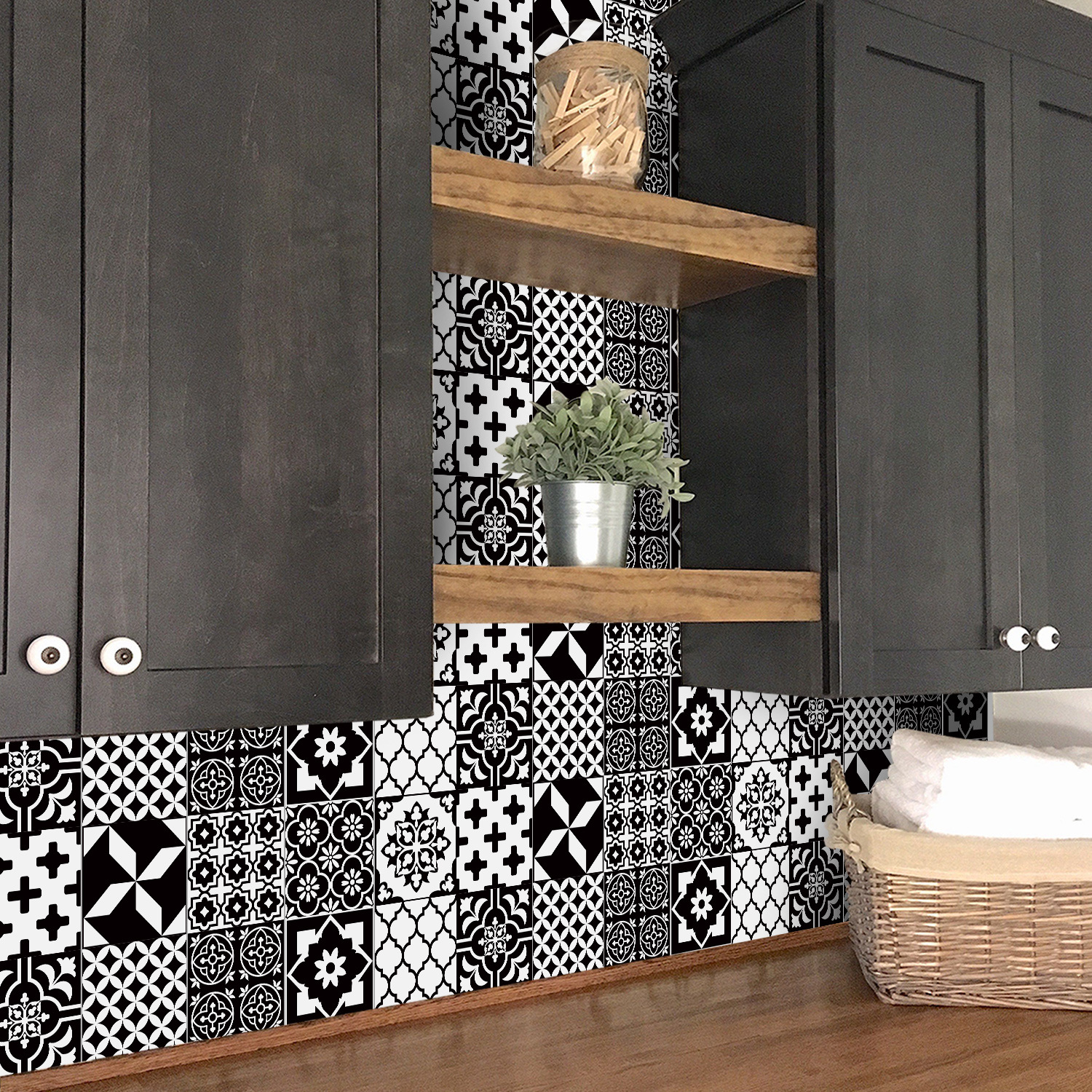 魅力集新型ポルトガル白黒タイル床貼り寝室浴室床飾り自己接着防水ヨーロッパ風貼り