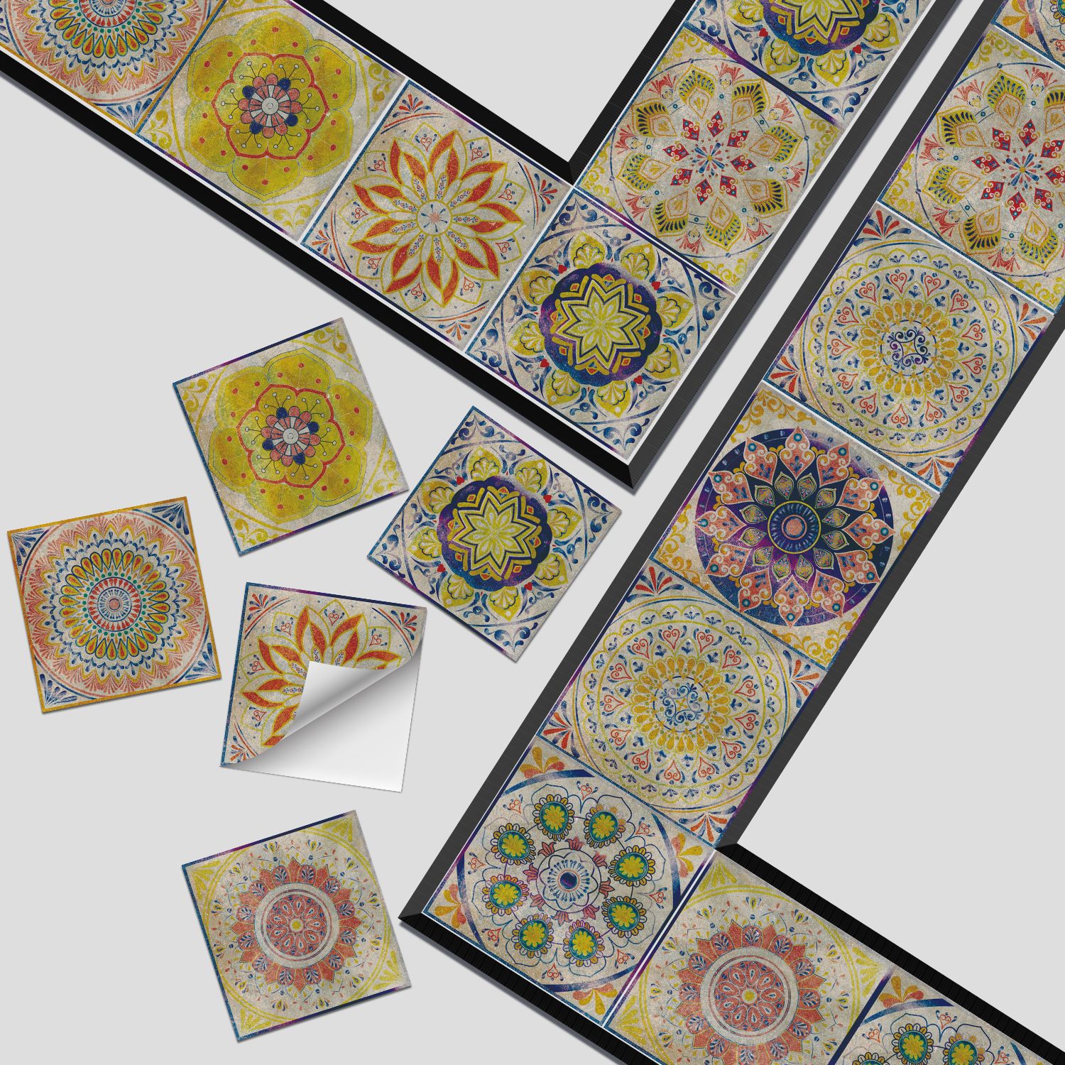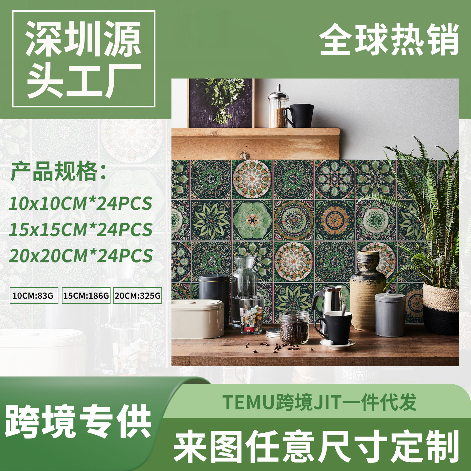 ヨーロッパ曼荼羅自己粘着 PVC ウォールステッカーキッチンストーブリビングルーム防水壁装飾 TEMU クロスボーダータイルステッカー