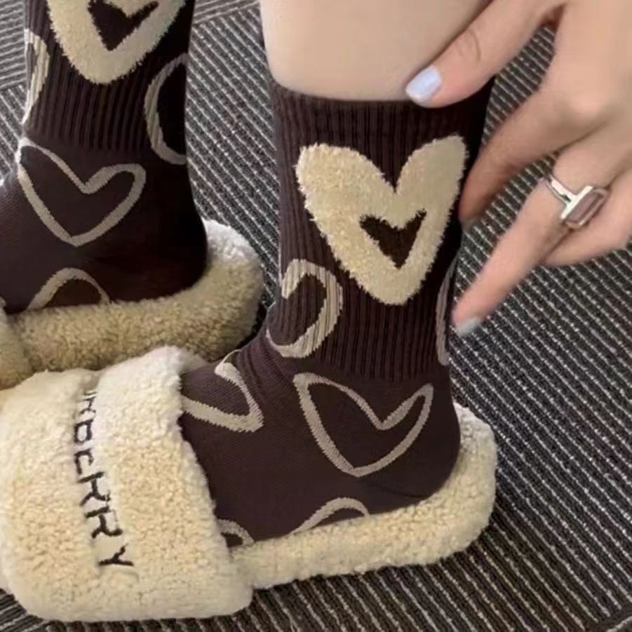 ぬいぐるみの愛の靴下の子供の腰の高い靴下の女性の靴下ins韓国版の簡単な森系の立体の図案の百合