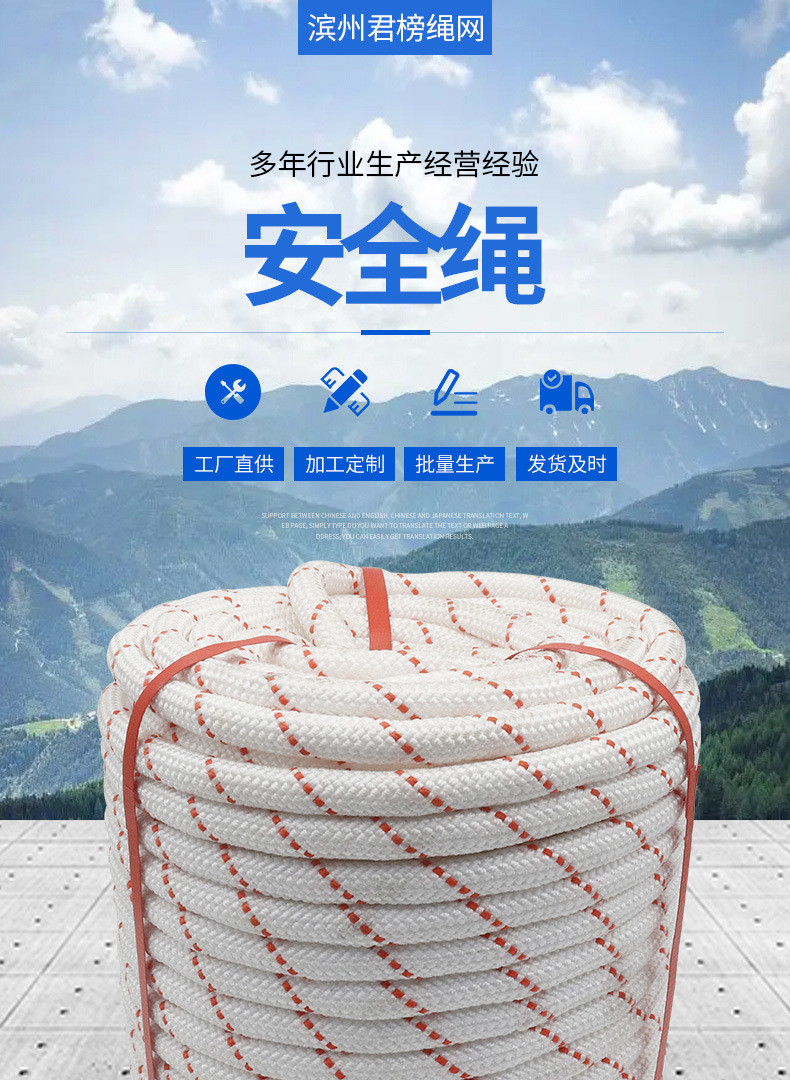 屋外高所作業用ナイロンロープ 消防救助ロープ 登山ロープ 安全帯 高所作業専用 安全ロープ