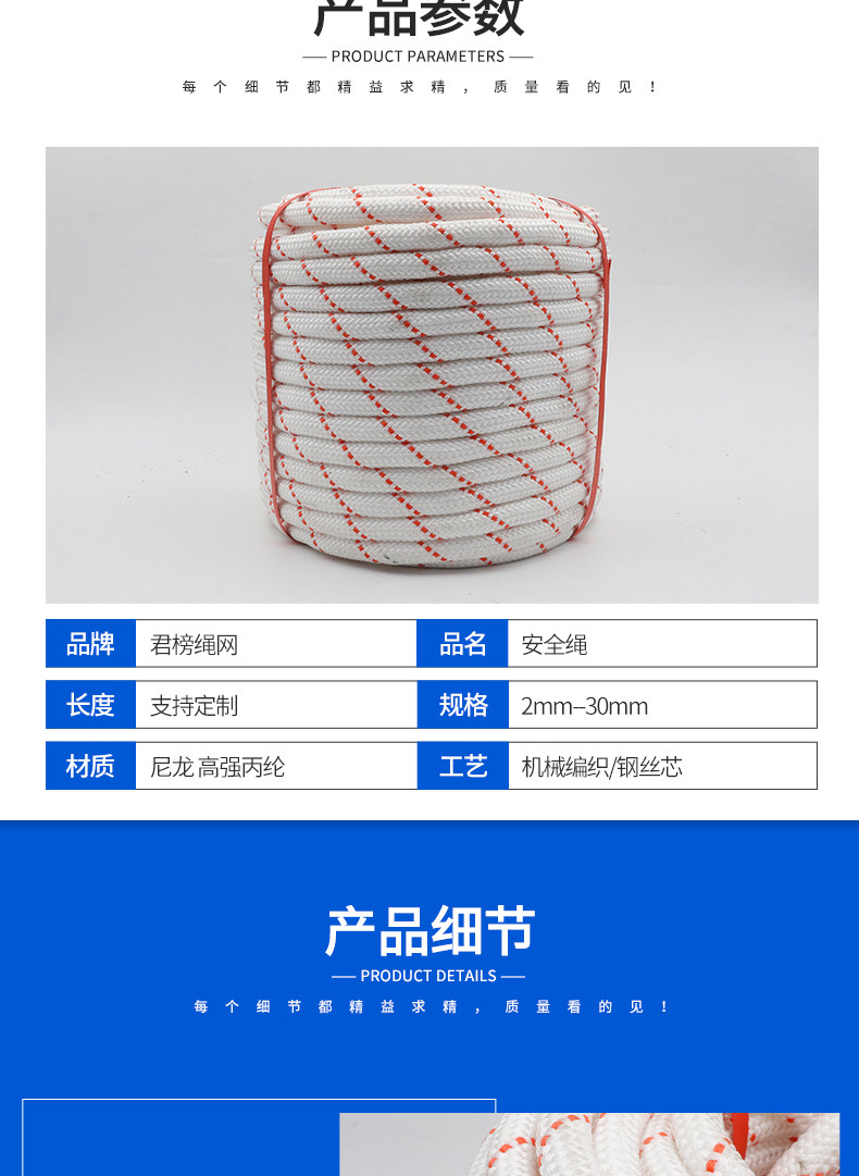 高所作業安全ロープポリプロピレン耐摩耗救助ロープ鋼線芯登山ロープ脱出ナイロンポリエステルロープ