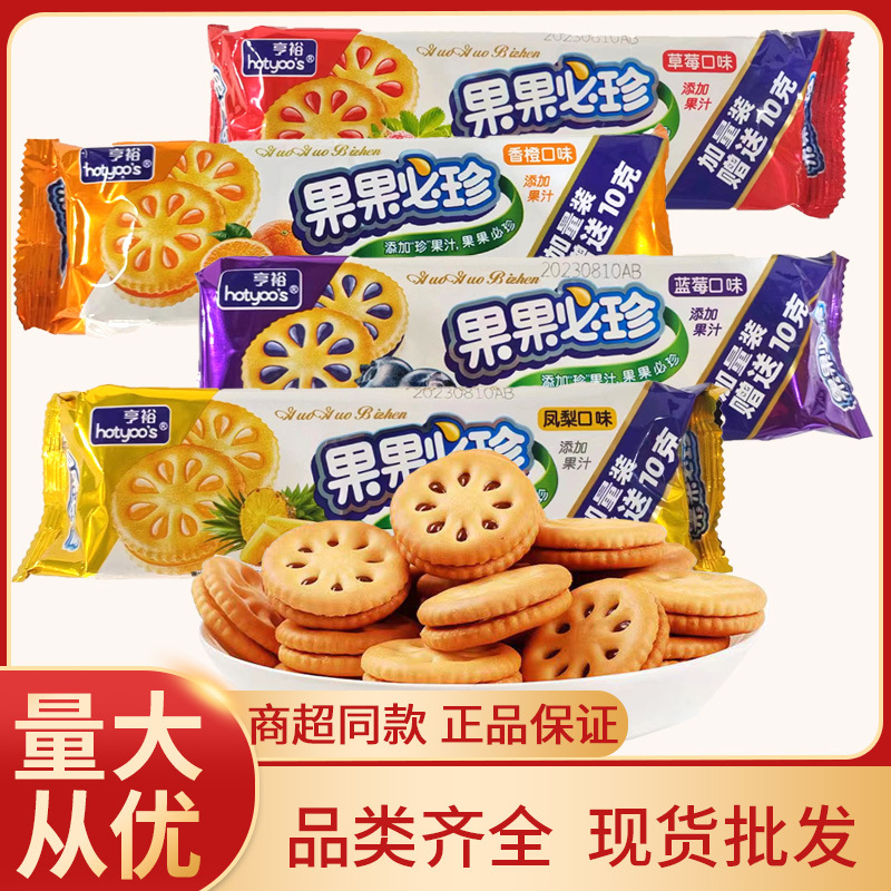 亨裕果果必珍ジャムサンドイッチビスケット果物多種類の味混合袋入りレジャースナック卸売り