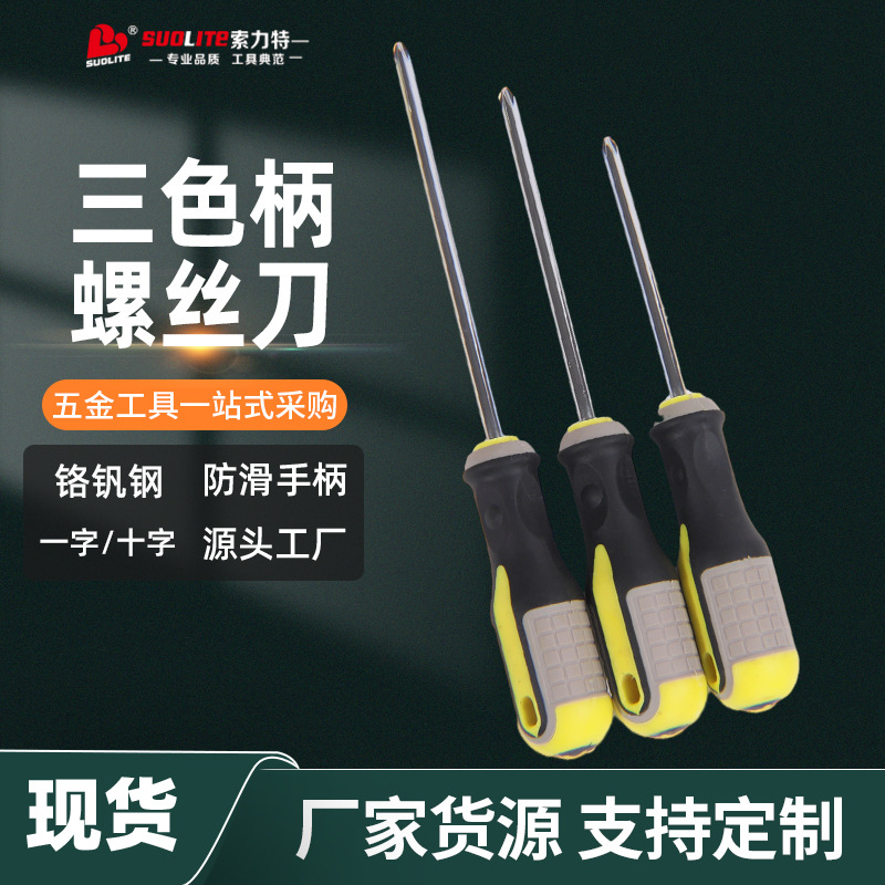 工業級三色柄十字一字ドライバークロムバナジウム合金鋼ドライバー家庭用ドライバードライバー