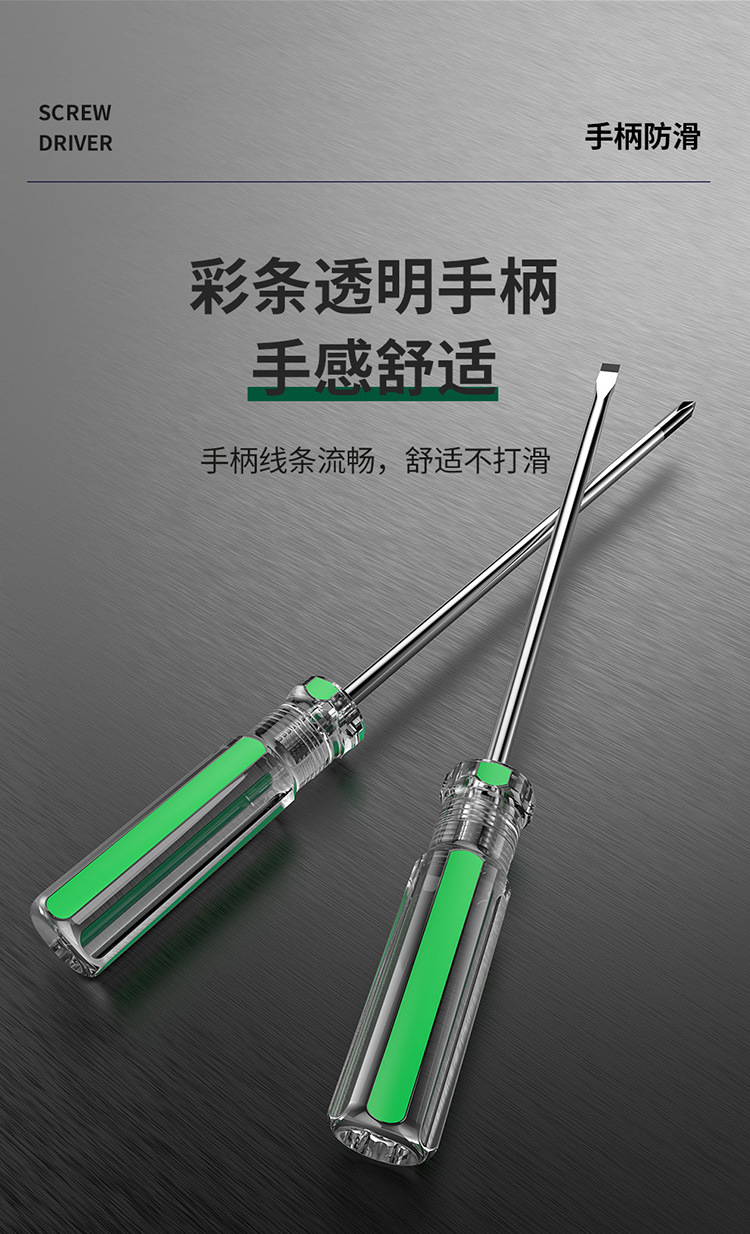 威力固彩棒一字頭十字ドライバー水晶柄改錐平口ドライバー帯磁気38-300mm長さ