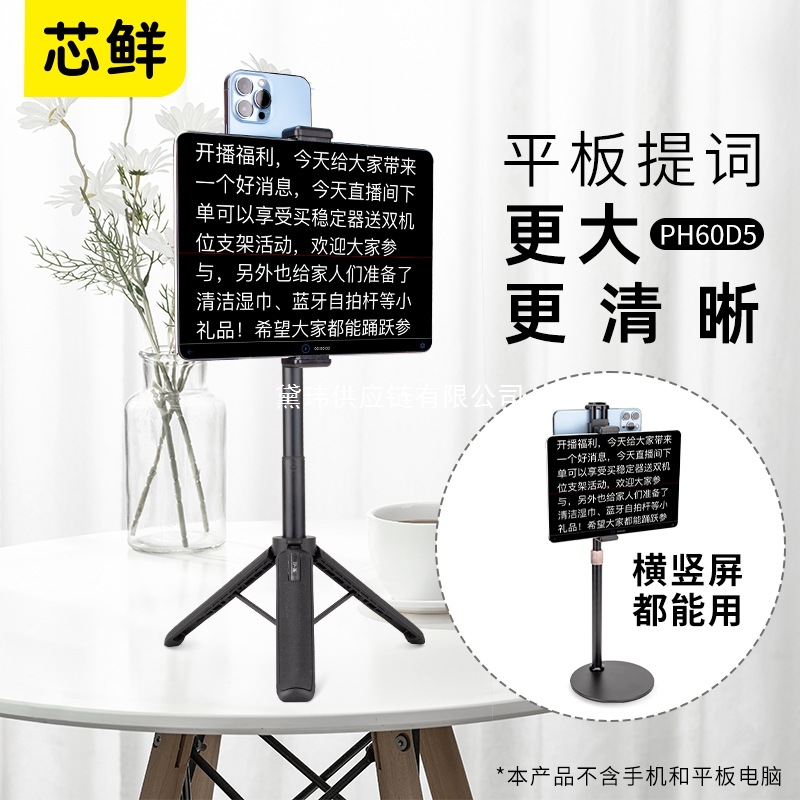 芯鲜PH60D5平板电脑大屏幕提词器拍摄支架玻璃轻便带双夹子口播落