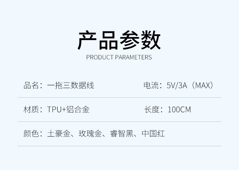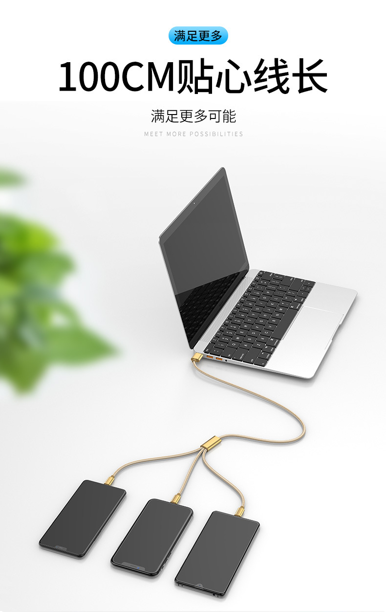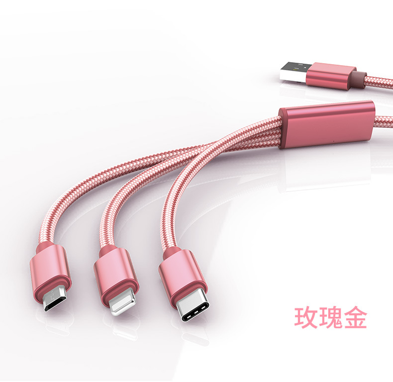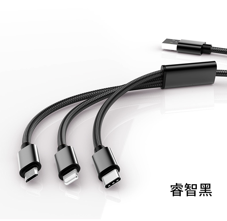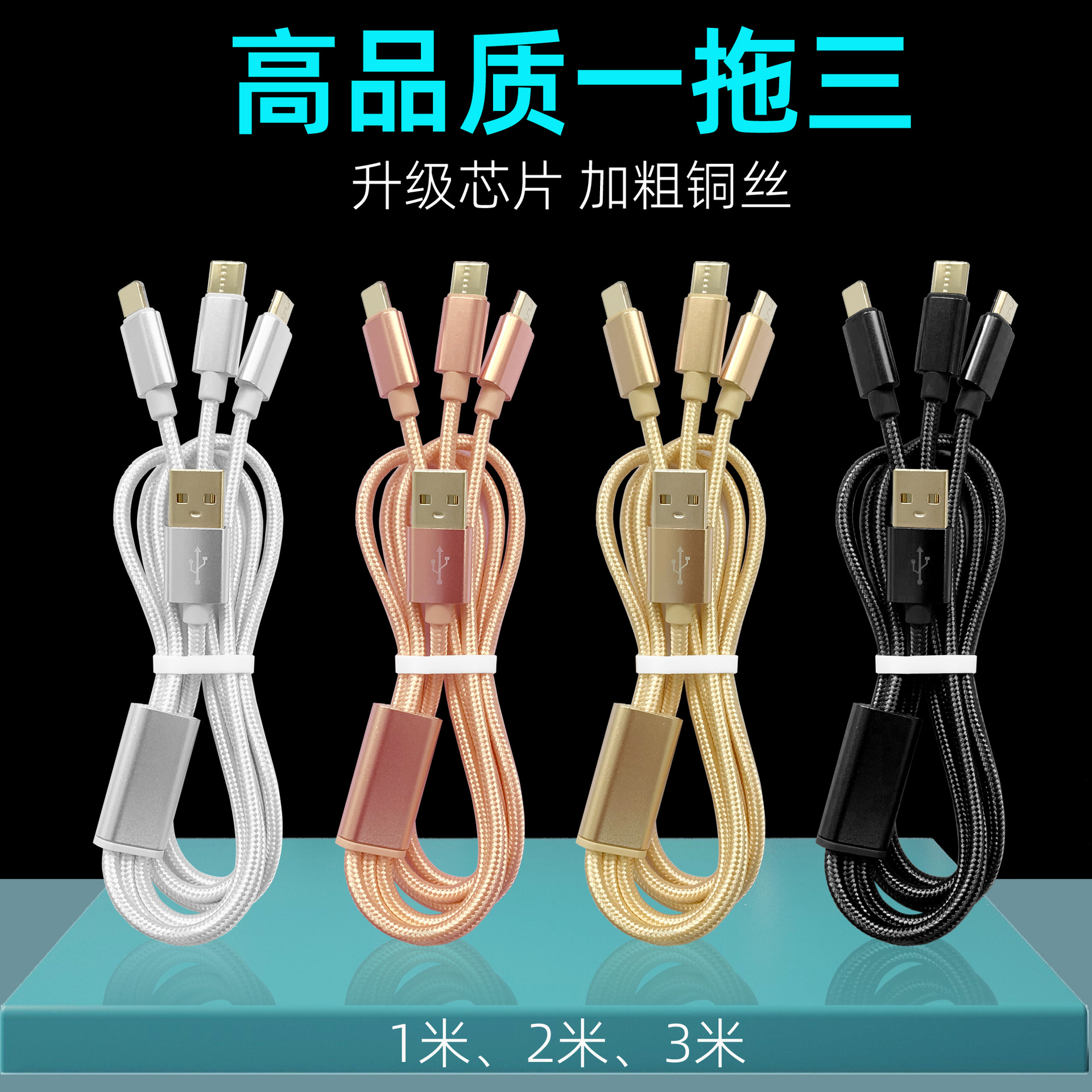 一拖三3个Type-C充电器线适用苹果安卓手机三合一快充多头数据线