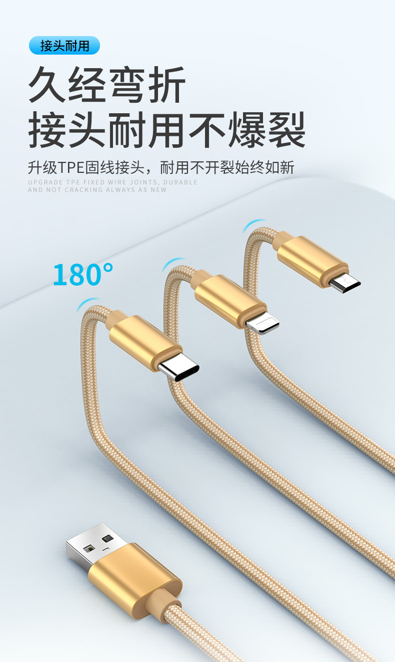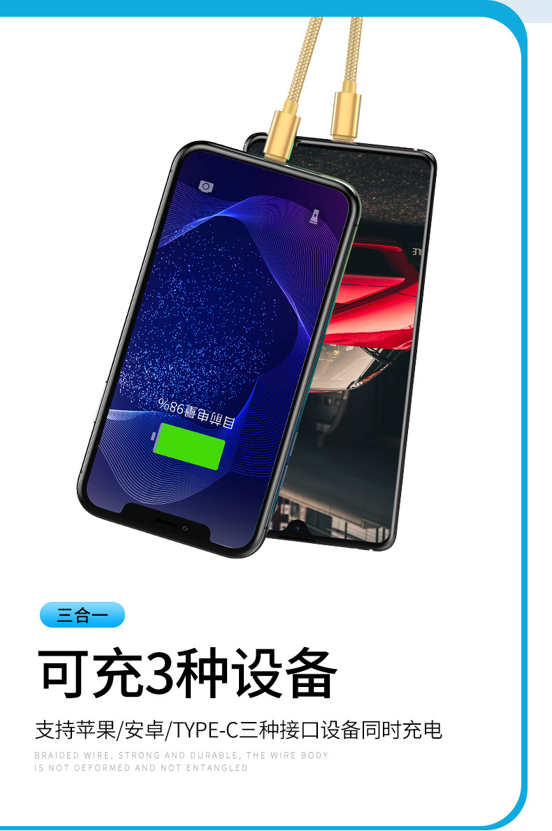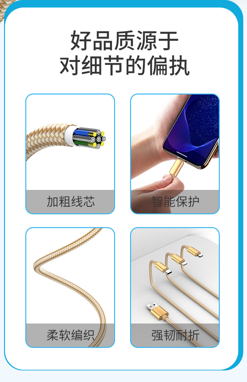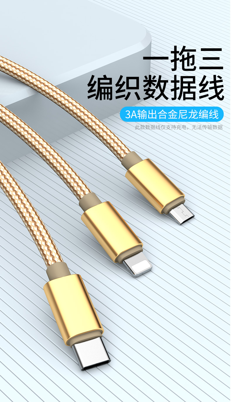 ナイロン編組一モップ三携帯電話の急速充電ケーブルはアンドロイドリンゴtype-c三合一充電ケーブルに適している