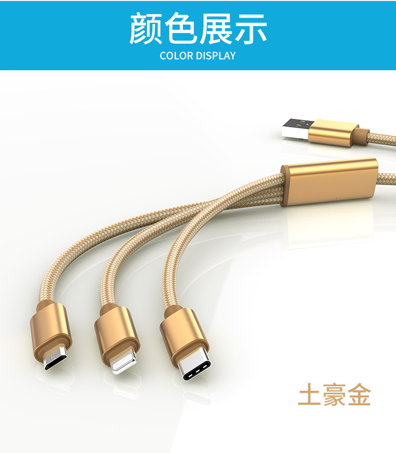 一モップ三充電線三合一速充電ケーブルはアップル華為安卓type-c延長2メートル3mを適用する
