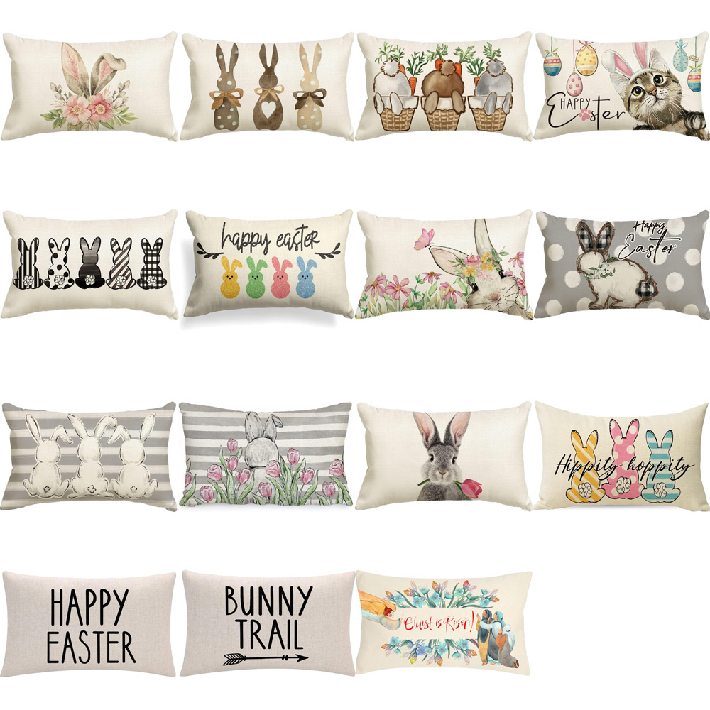国境を越えたイースターウサギの卵抱き枕祝日パーティー装飾ソファー枕自動車シート亜麻腰