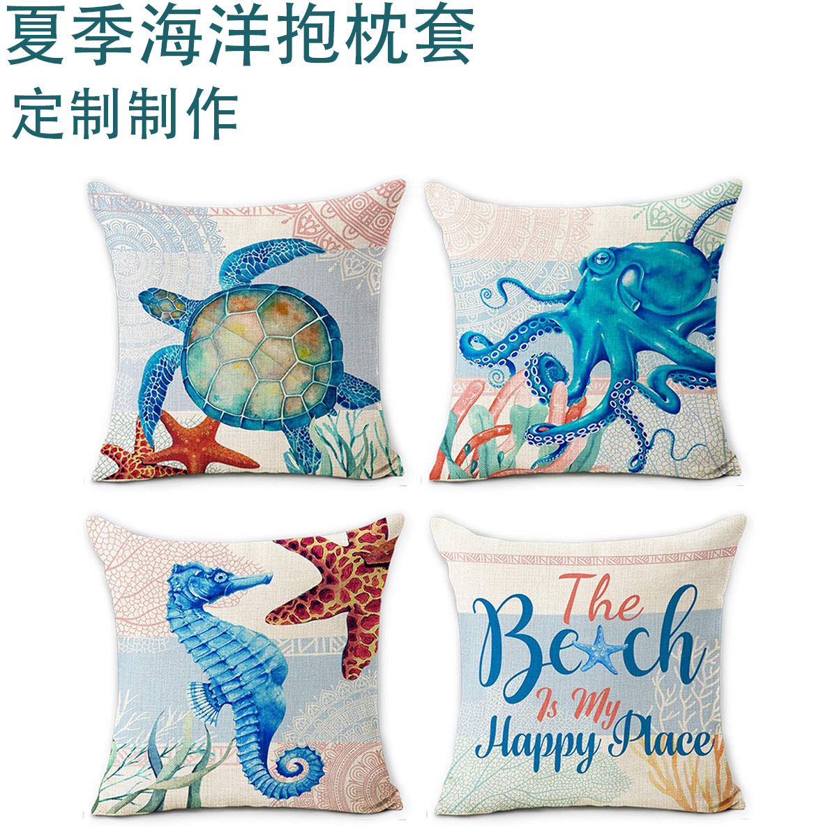 アマゾンの人気夏の海洋抱き枕カバービーチ海星海馬亜麻材質メーカー直販