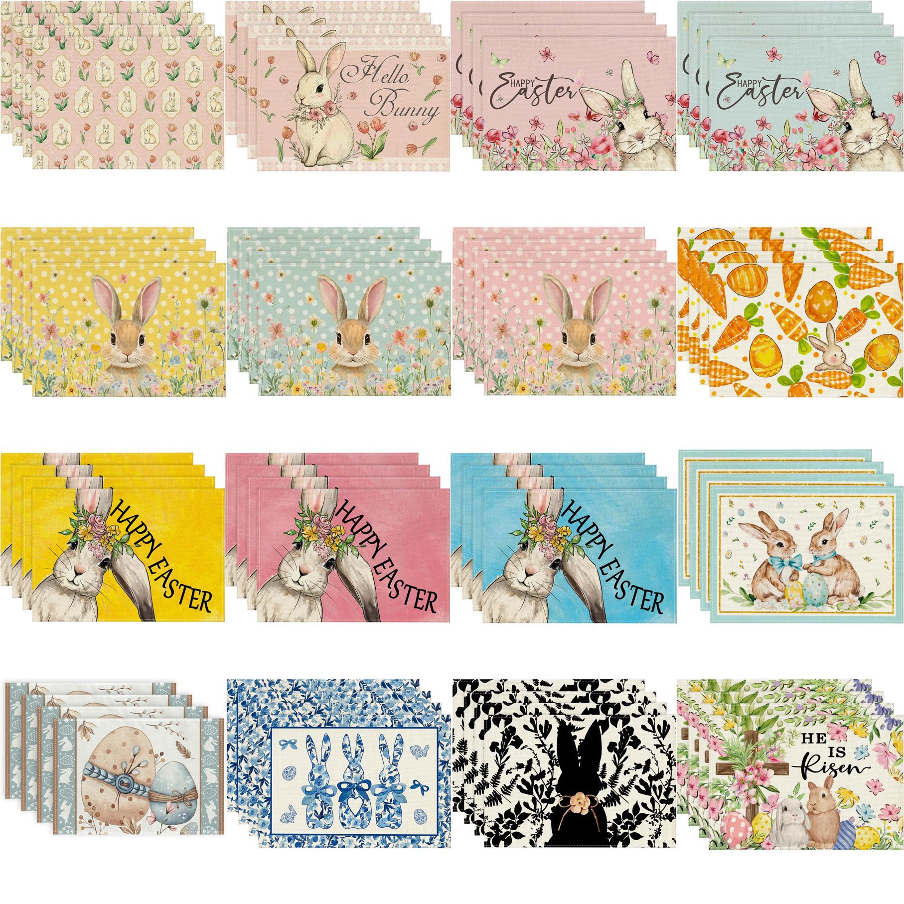 クロスボーダーイースター食事マットリネンカラーエッグウサギ柄プリントテーブルマットパーティー祭り雰囲気装飾食器