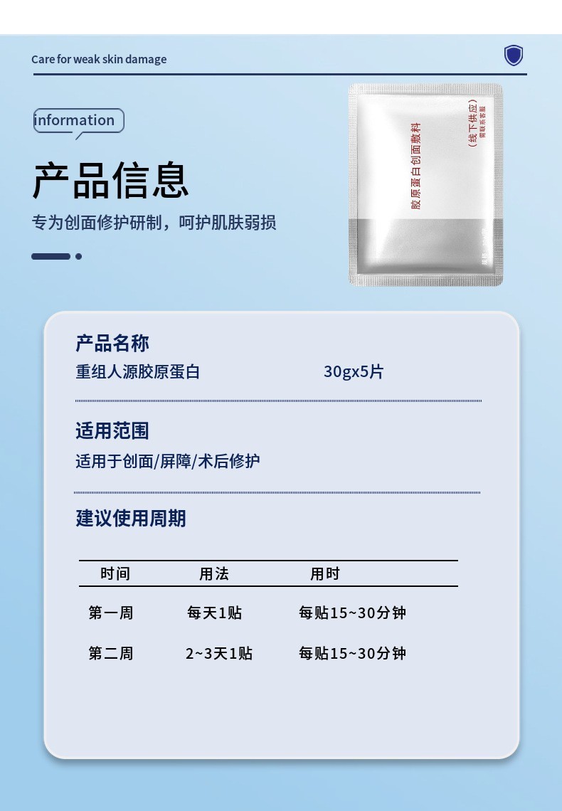 庭線組換えIII型コラーゲン創面アプリケーション術後日焼け後に敏感肌パッチマスク卸売りを修復する