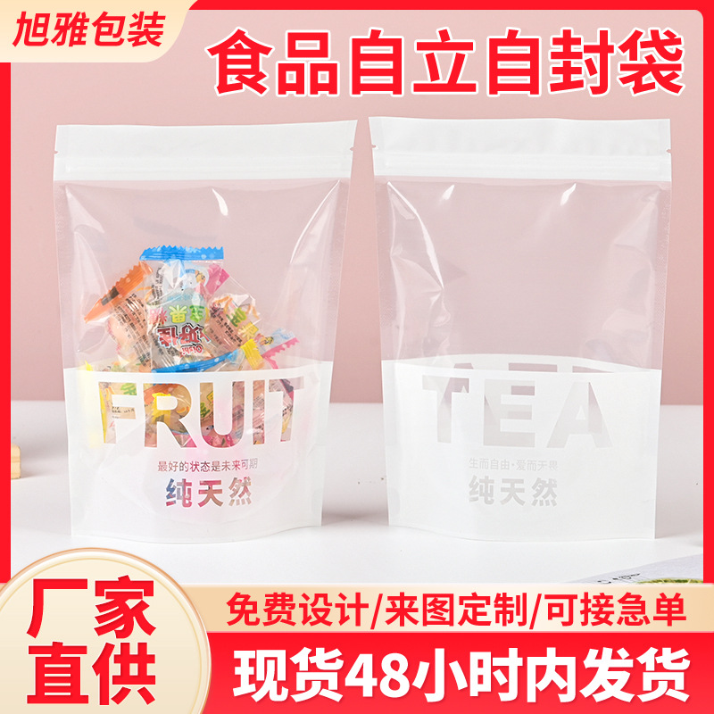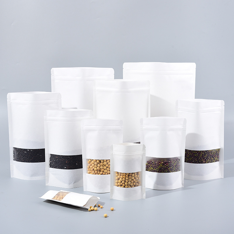 現物白色クラフト紙袋自封袋食品茶葉密封袋包装袋フロスト窓閉鎖袋