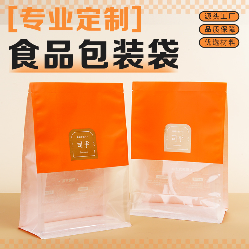 ブレッドトーストバッグカスタムホワイト牛革8面シール窓付き透明カーリングシール焼き菓子包装袋