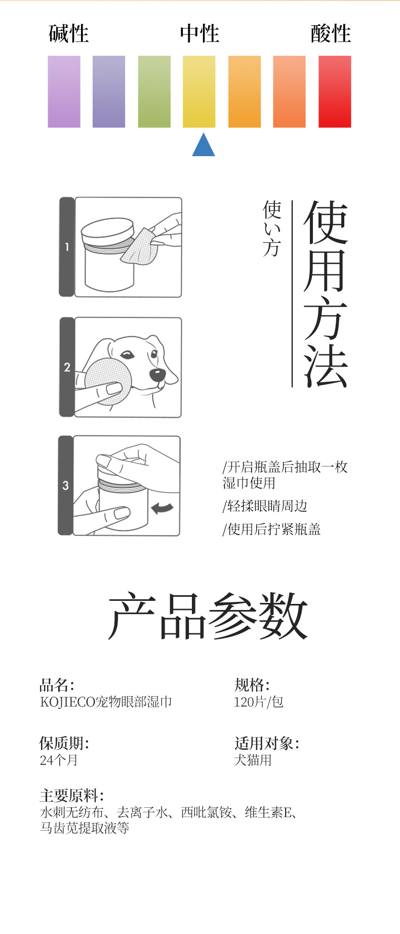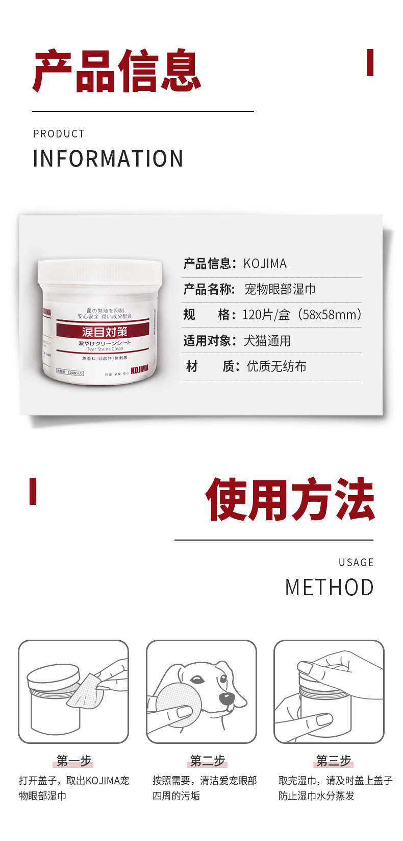 KOJIMA宠物湿巾半臂长狗狗猫咪专用湿巾80抽免洗去泪痕擦脚清洁