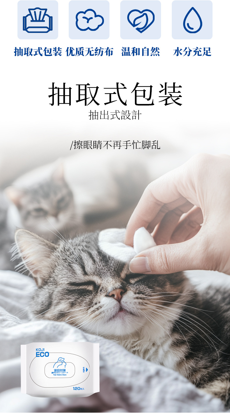 日本のKOJIMAペットのウェットティッシュの猫は涙の跡に行きます。
