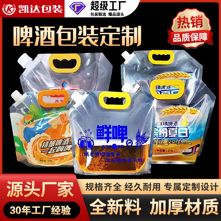 ビールバッグ 厚手 生ビール自立型吸い口付きバッグ プラスチック製 透明 持ち運び可能な水バッグ 飲料包装袋 カスタム対応