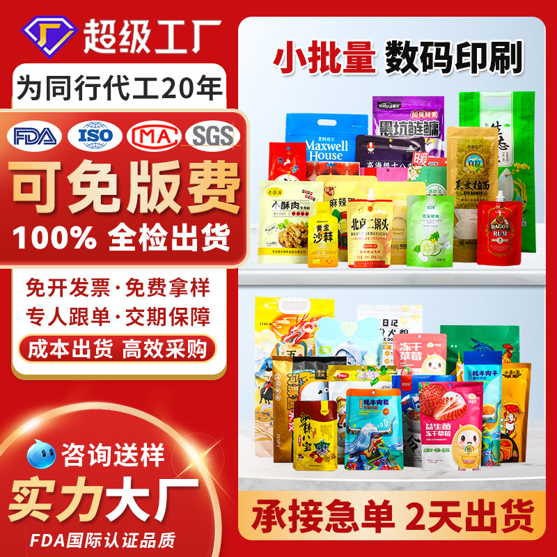 少量カスタム食品包装袋 アルミ箔複合デジタル印刷 茶葉・コーヒー用 八方シール自立型ジップロックバッグ