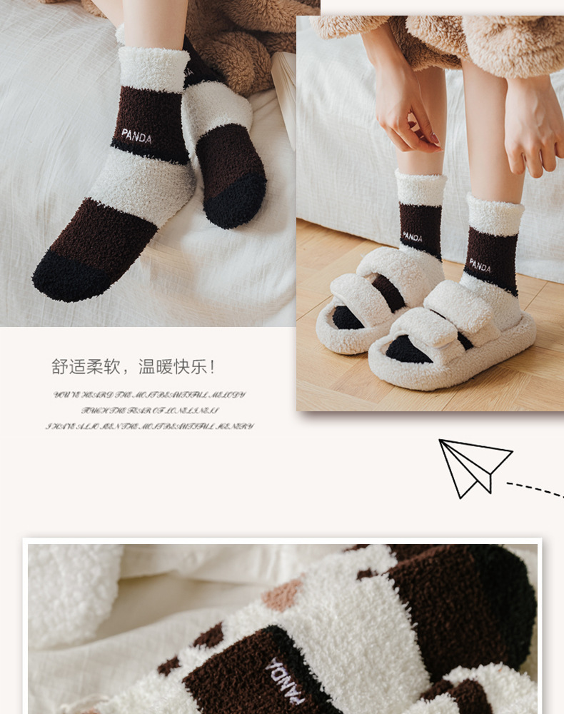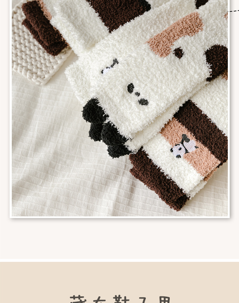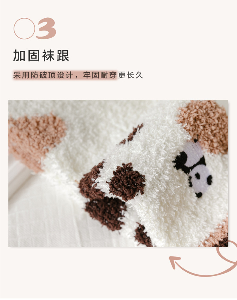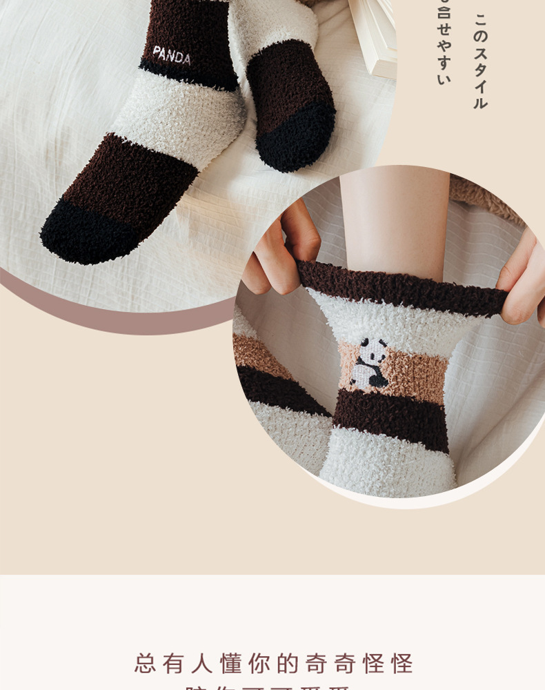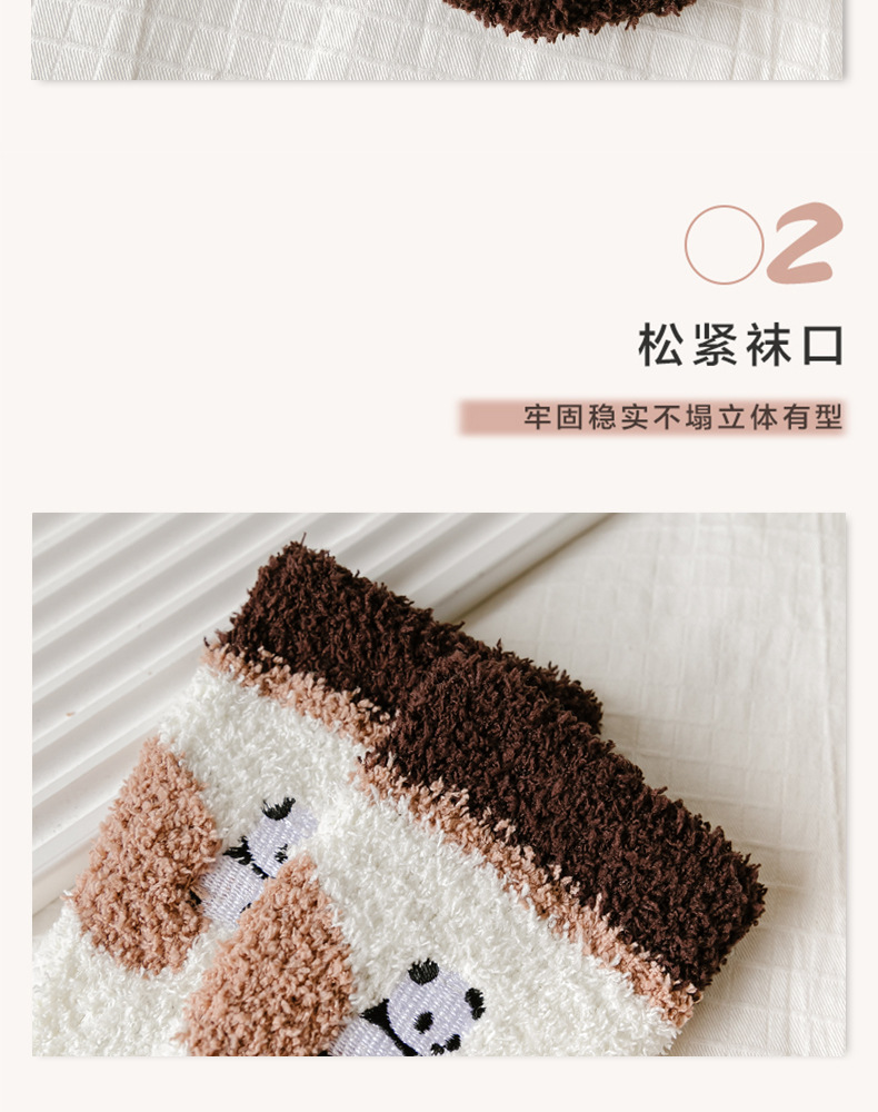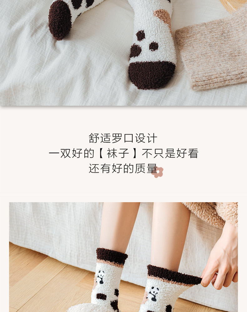 澳绒厚袜子女秋冬款保暖加绒加厚中筒袜冬季月子袜刺绣可爱睡眠袜