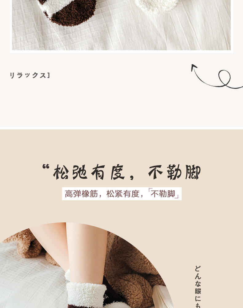 珊瑚の絨毯の靴下の女性の冬の厚いタオルの家の床の睡眠のストッキングの日本のかわいい産後の月子の靴下