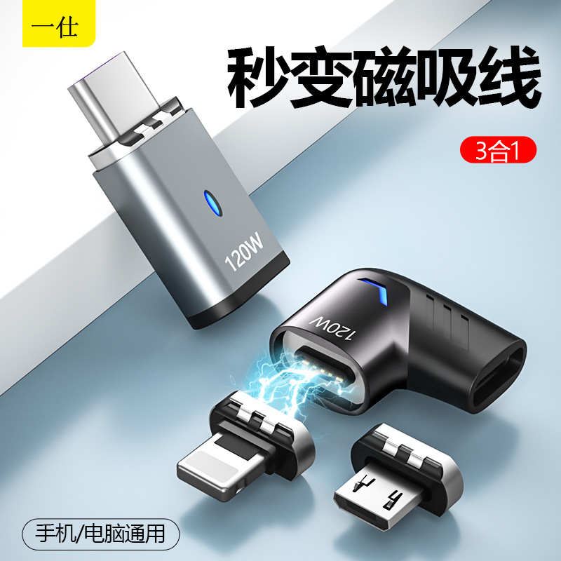 Type-c磁気吸引アダプタ120w三合一適用リンゴ華為switch米oppo携帯電話パソコン