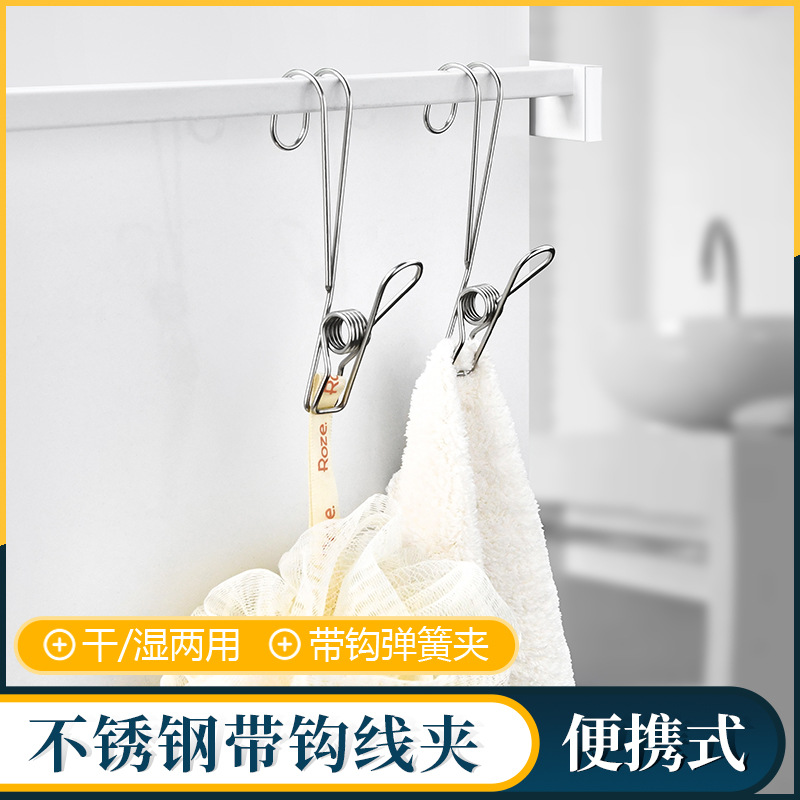 多用途不锈钢夹子带挂钩可悬挂浴室固定夹防风晾衣架衣带钩夹子