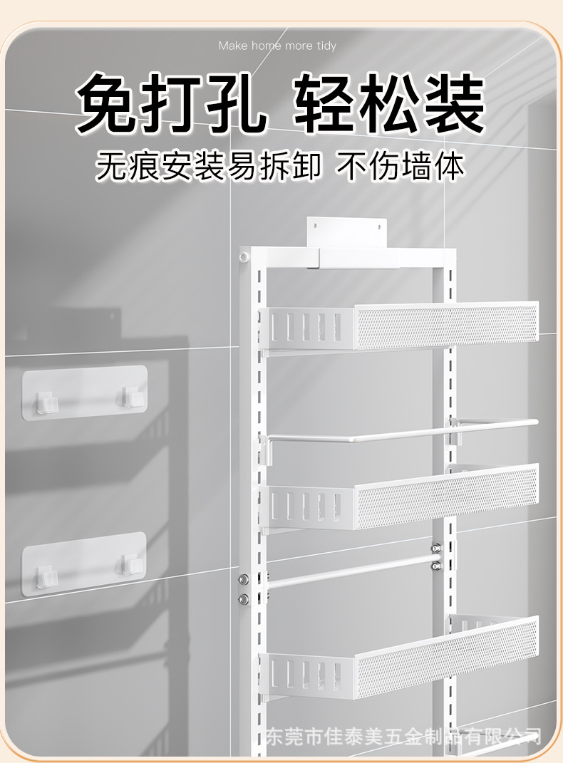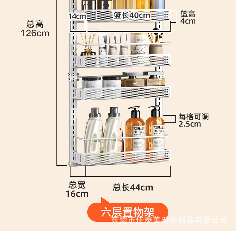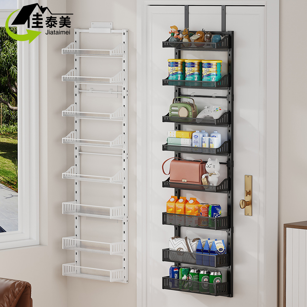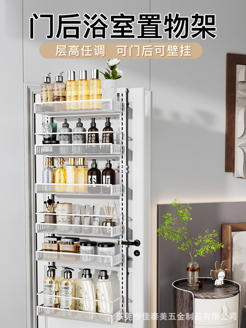 可调节门后挂篮置物架多层免打孔储物架浴室厨房门后杂物夹缝架子