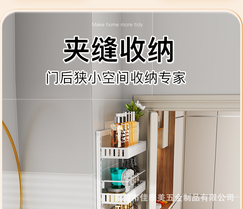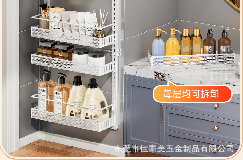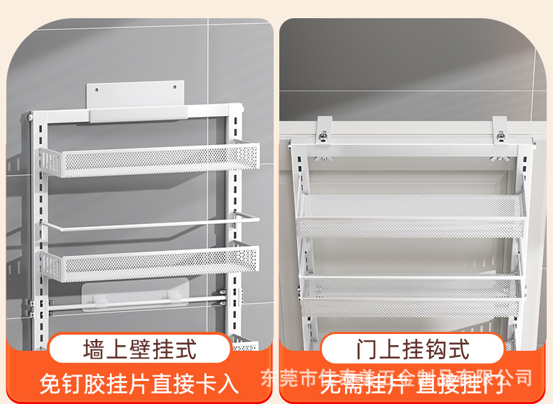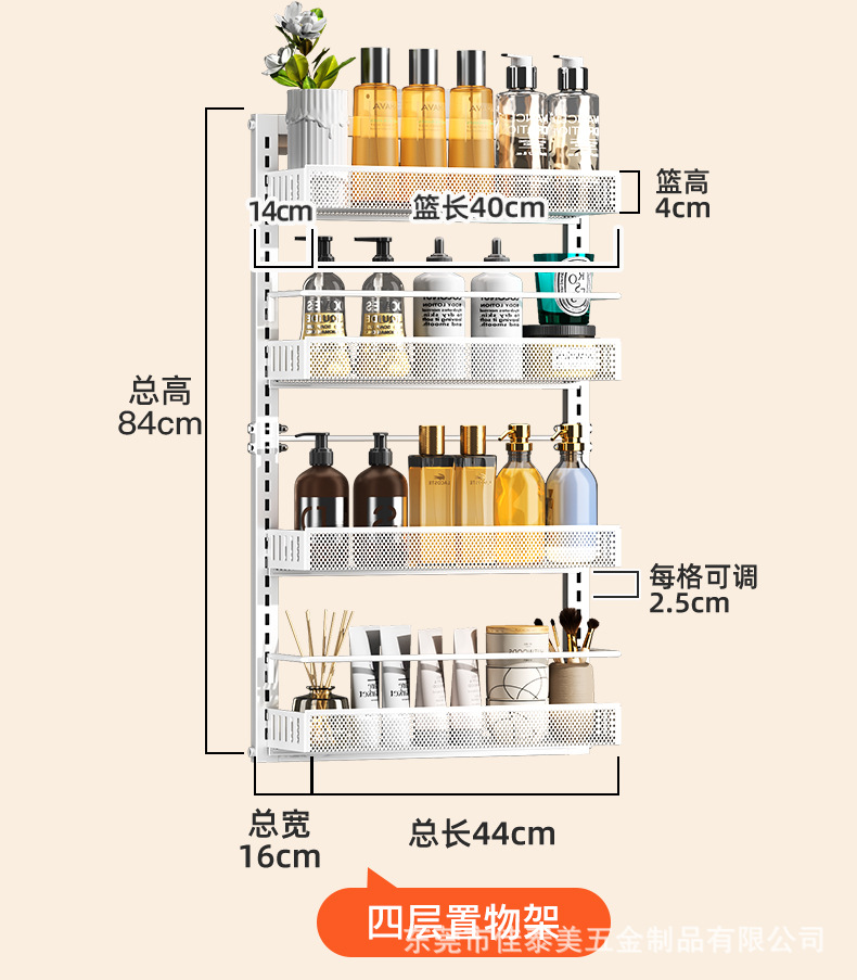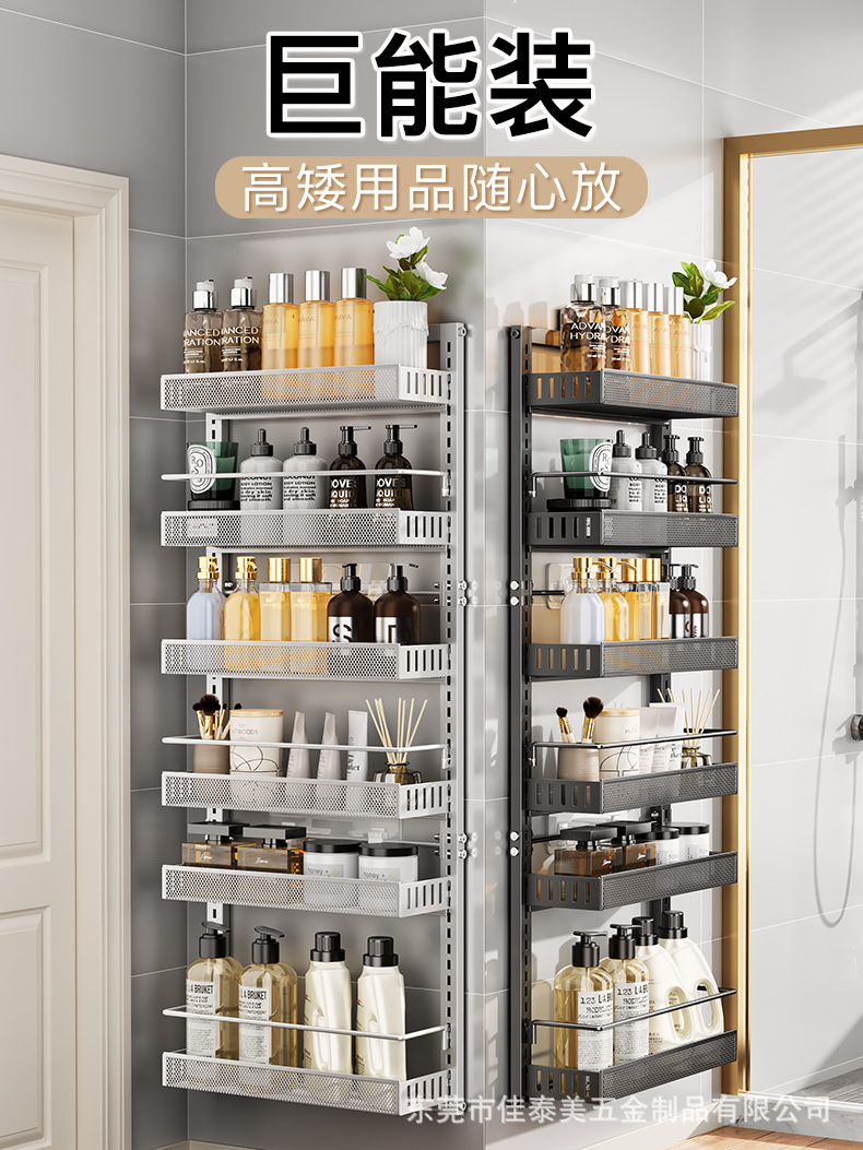 可调节门后挂篮置物架多层免打孔储物架浴室厨房门后杂物夹缝架子
