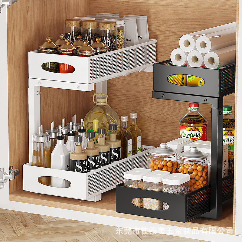 下シンクシェルフ棚段引き出し式引き出し棚二重調節可能洗面用品シンク下方収納